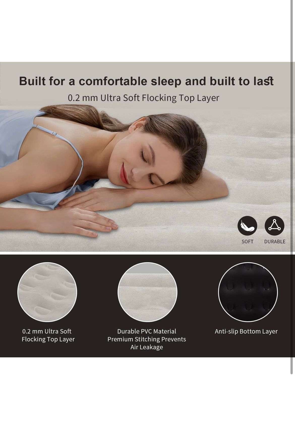 New queen inbox never opened new air mattress with pump included self inflating purchased off Amazon and did not need dimensions are in the photos