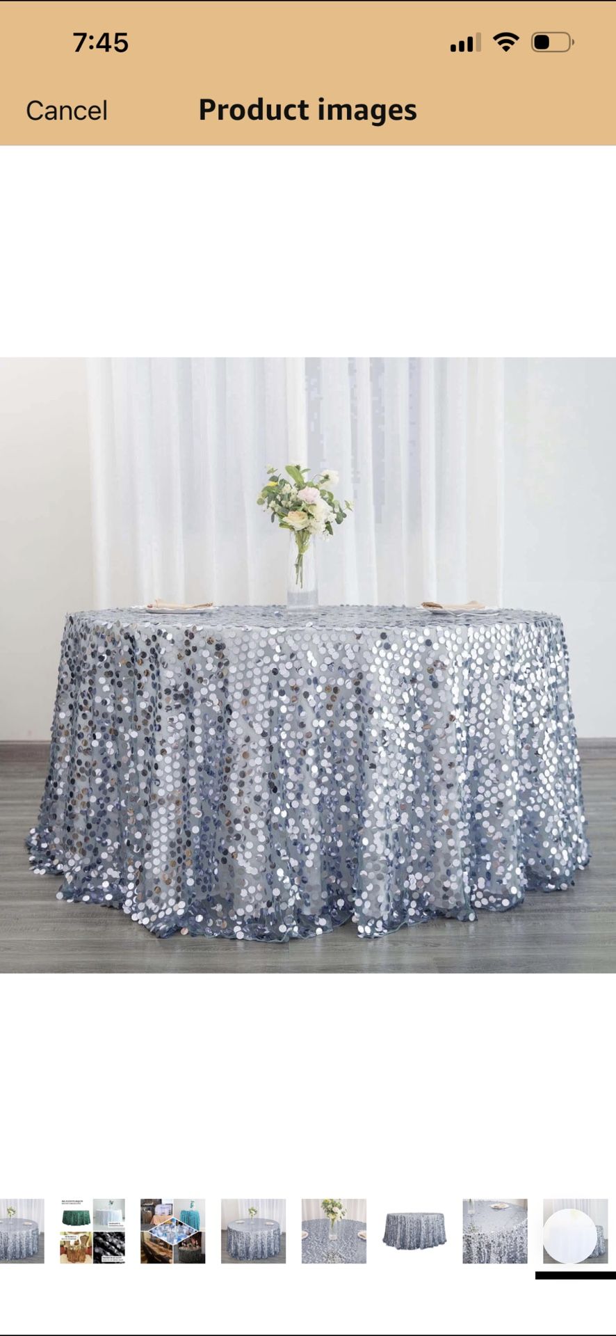 6 Round Sparkle Metallic Tablecloths. It’s 6 of them and they are 120 inches!