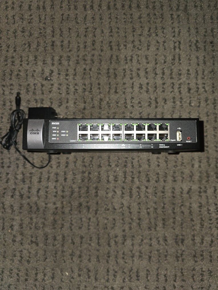 Excellent condition Dual Gigabit Ethernet WAN ports for load balancing and/or business continuity ● High-performance Gigabit Ethernet ports, enabling large file transfers and multiple users ● Dual USB ports for storage and 3G/4G modem failover ● SSL VPN and site-to-site VPN enable highly secure connectivity, making the Cisco RV320 and RV325 perfect for remote employees and multiple offices ● Strong security: Proven stateful packet inspection (SPI) firewall and hardware encryption ● Easy to set up and use with wizard-based configuration