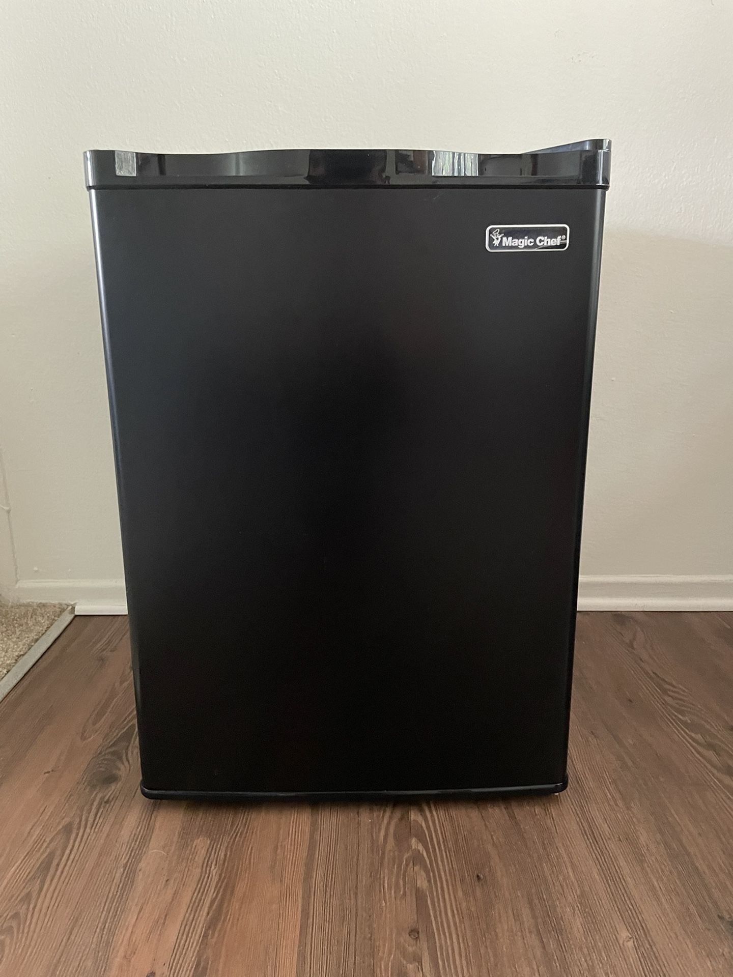 Magic Chef 2.6 cu. ft. Mini Fridge in Black Energy Star. Bought new from Home Depot less than 1 year ago. Works great! Moving, please see my other items for sale.