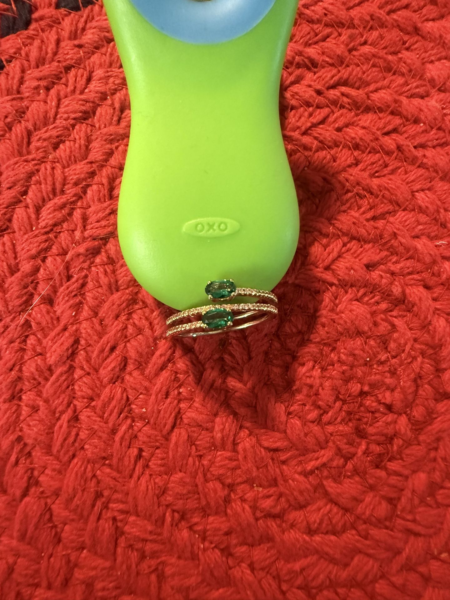 Simulated emerald gold plated stacked ring