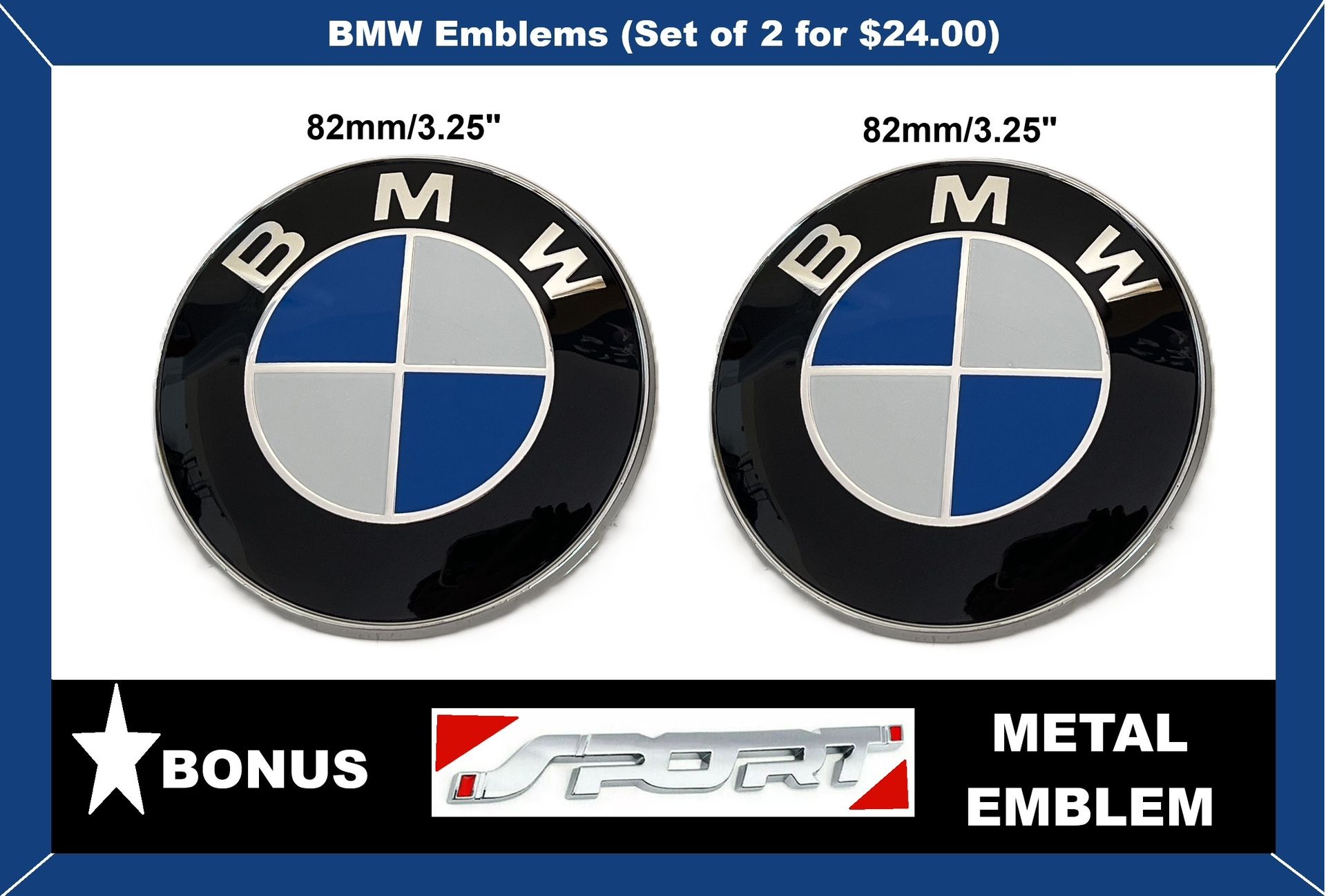 ➡️(New) BMW Hood or Trunk Emblems (Set of 2 for $24.00) Plus Bonus Metal Sport Emblem Set Includes: - 2 BMW Emblems (82mm/3.25”) - 1 Metal Sport Emblem (Bonus) Description: - Emblem Size: (82mm/3.25”) - Slightly Raised Lettering Item can be purchased on Etsy! No returns……all sales are final