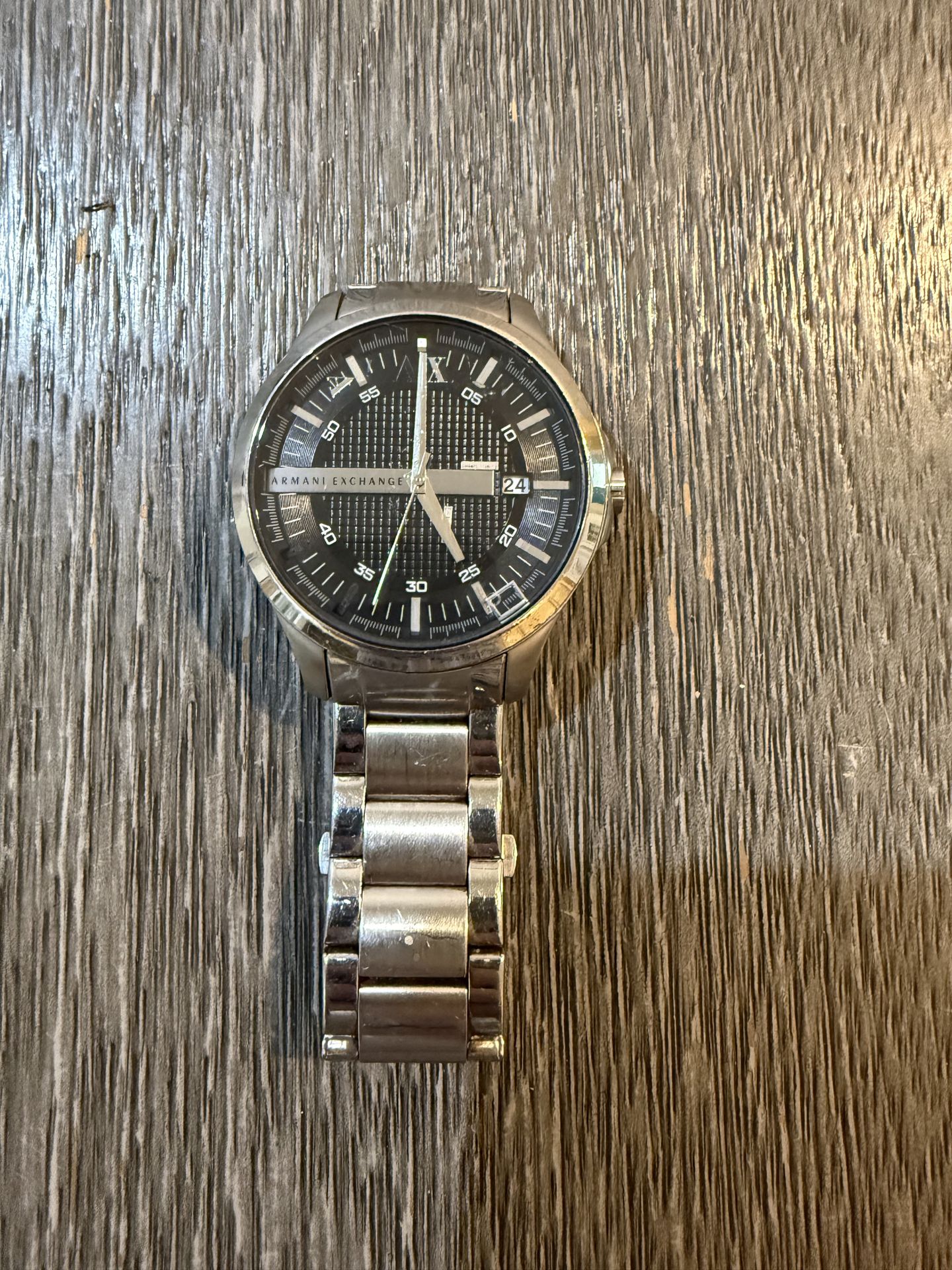 Stainless steel Armani Exchange watch with date display. Battery is dead.