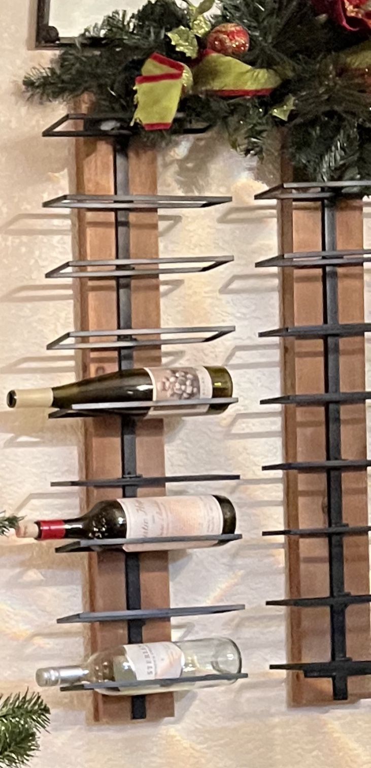 Wine display that mounts on the wall 38” tall Holds 9 bottles Four available, $5 each