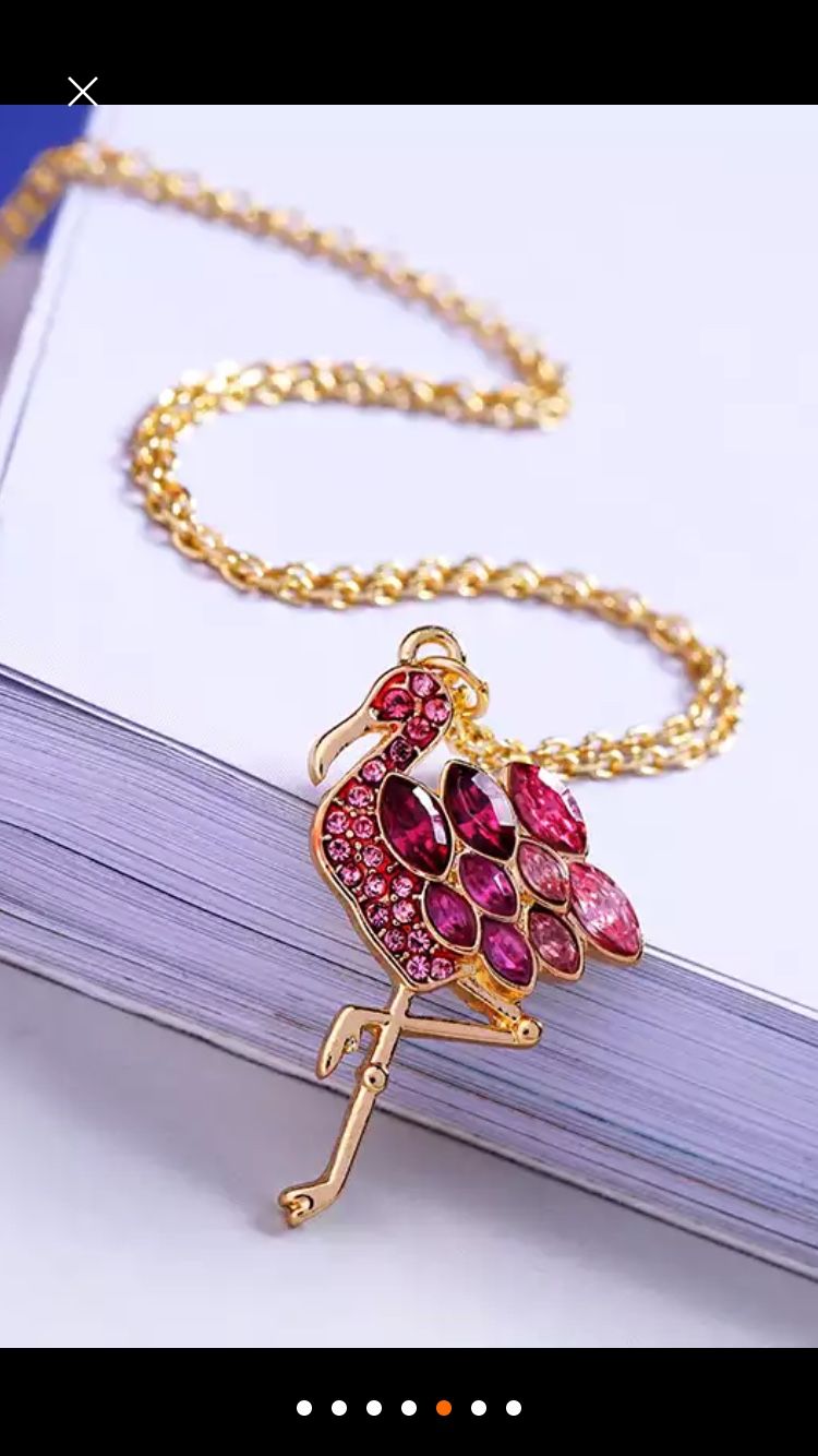 **BRAND NEW** Gold Metal Full Rhinestone Flamingo Pendant Necklace Necklace Ships in secure bubble wrap and inside a beautiful organza gift bag :) Price: $12
