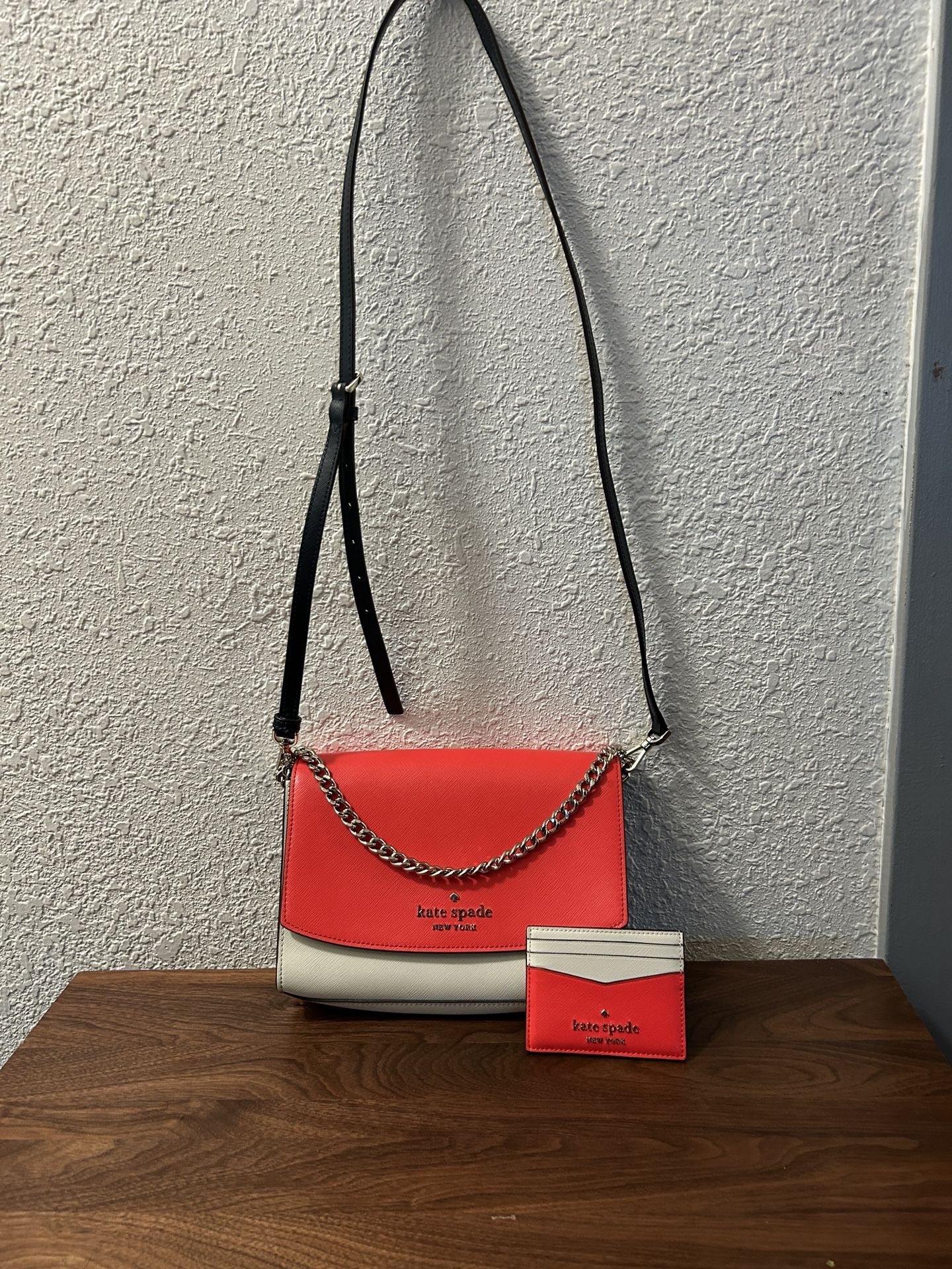 Brand New! This is a classic Kate Spade New york Carson Convertable Crossbody, in colorblock saffiano leather with matching card holder