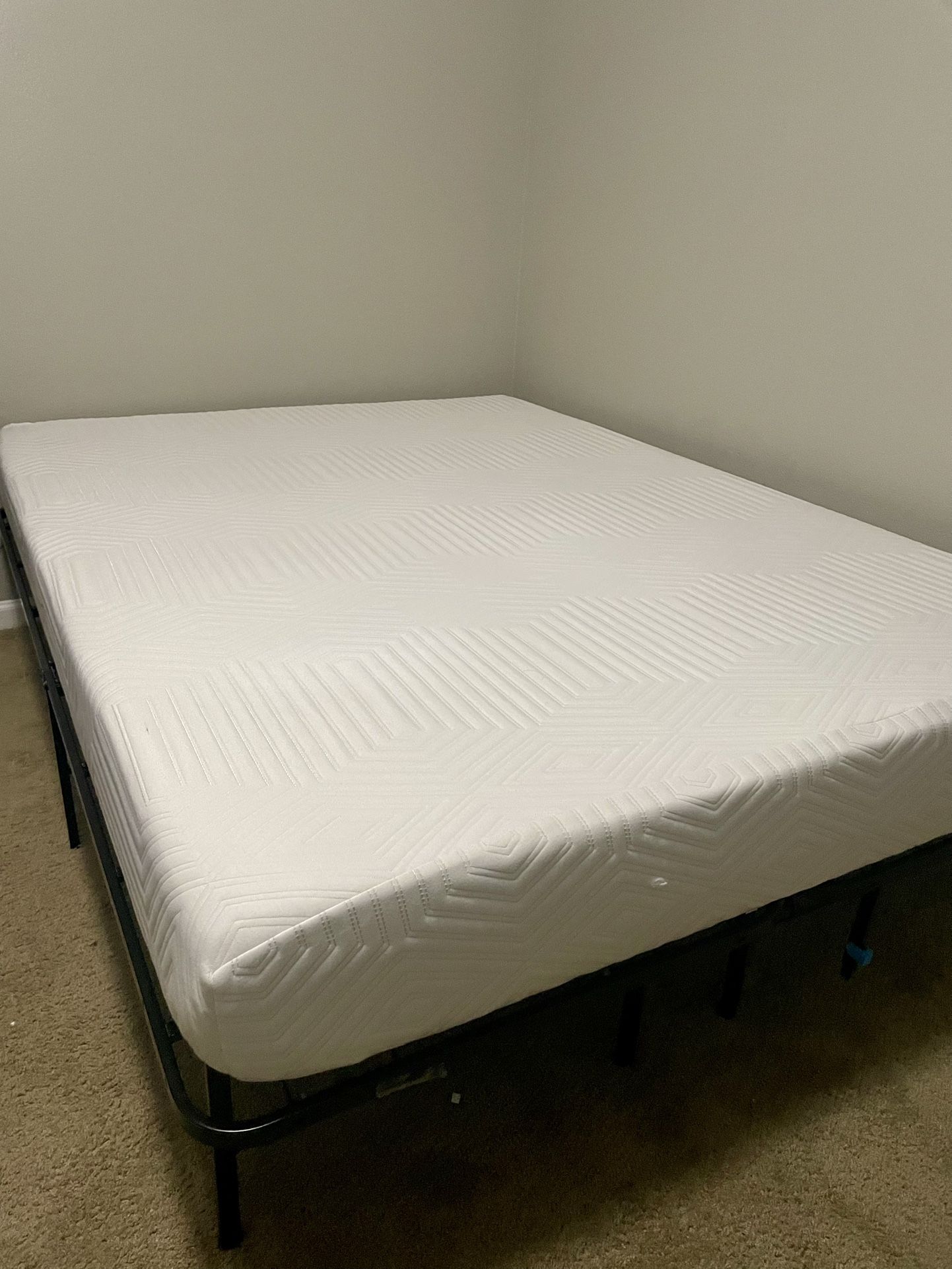 Recent ASU doctoral graduate moving and selling furniture! This is a very comfortable 8-inch thick Queen-size Gel Memory Foam mattress in great condition. I bought it from Mattress Firm. I am a non-smoker, and the mattress has been kept very clean and well-maintained. BONUS: I am including the matching black metal bed frame for FREE with the purchase of the mattress.