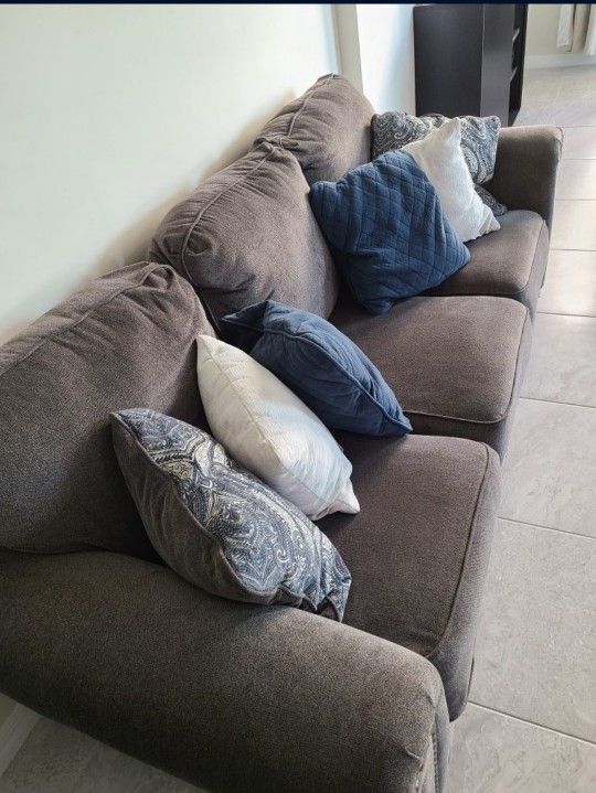 This was purchased via Ashley Furniture. Still in real good condition and comfortable. More of a plush couch. Price is negotiable but serious inquiries only.