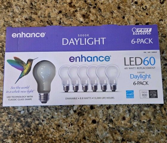 π―π PLEASE READ ALL β¬οΈ If it is posted, it is available. Pick up only Near 152nd Ave and Camelback in Goodyear A brand new unopened except to take photos pack of indoor LED 60 watt daylight color light bulbs that are dimmable. It is a complete six pack and brand new! These retail for $24.00 plus tax at Walmart