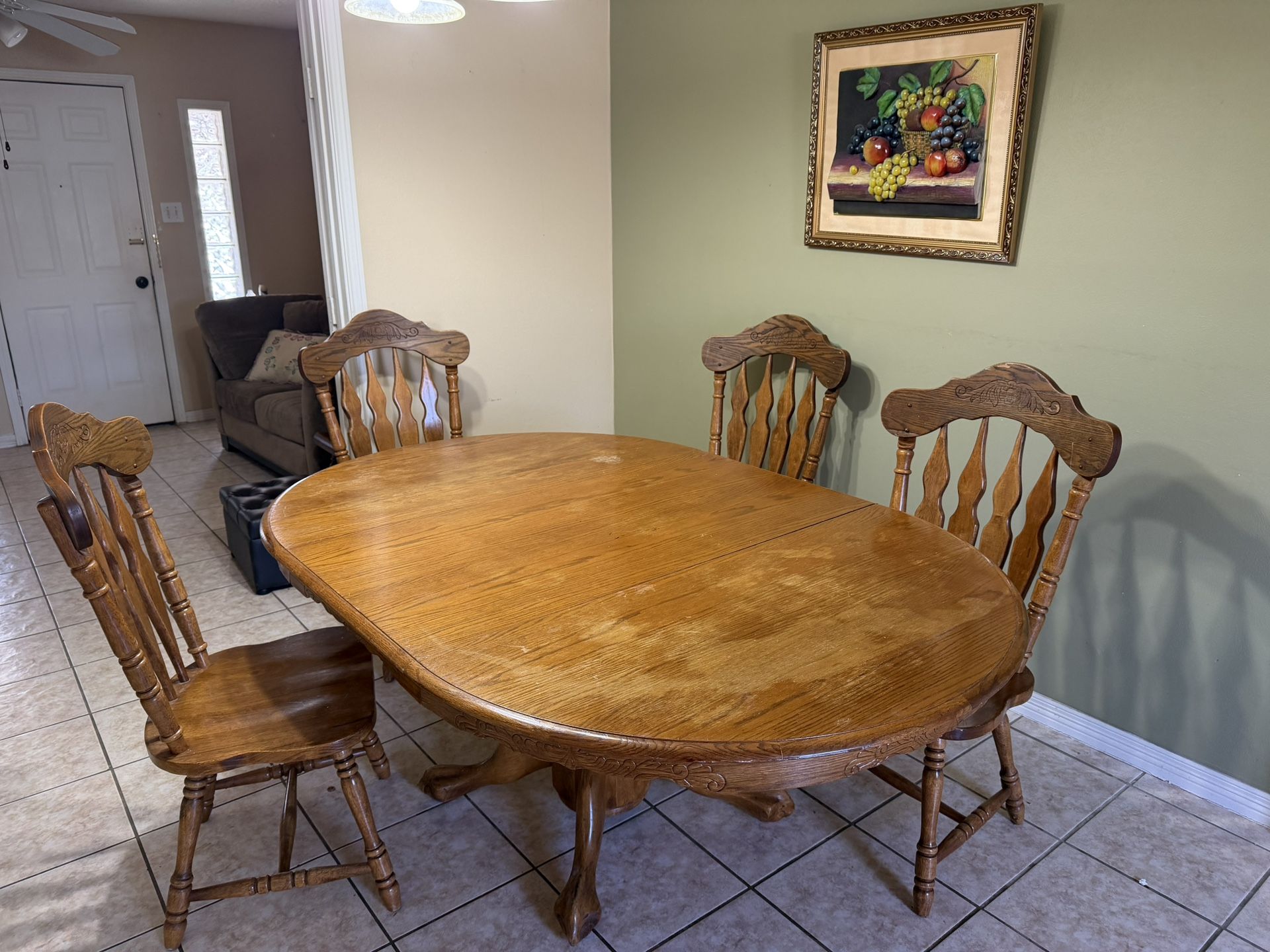 Free must must be picked up Sunday March 1st 10-12 noon Used kitchen table with 4 chairs Good/solid condition with normal wear Has leaf to make table round and smaller Heavy FREE pick up required 288/Almeda road Cross street buffalo speedway and Hiram Clark 77045