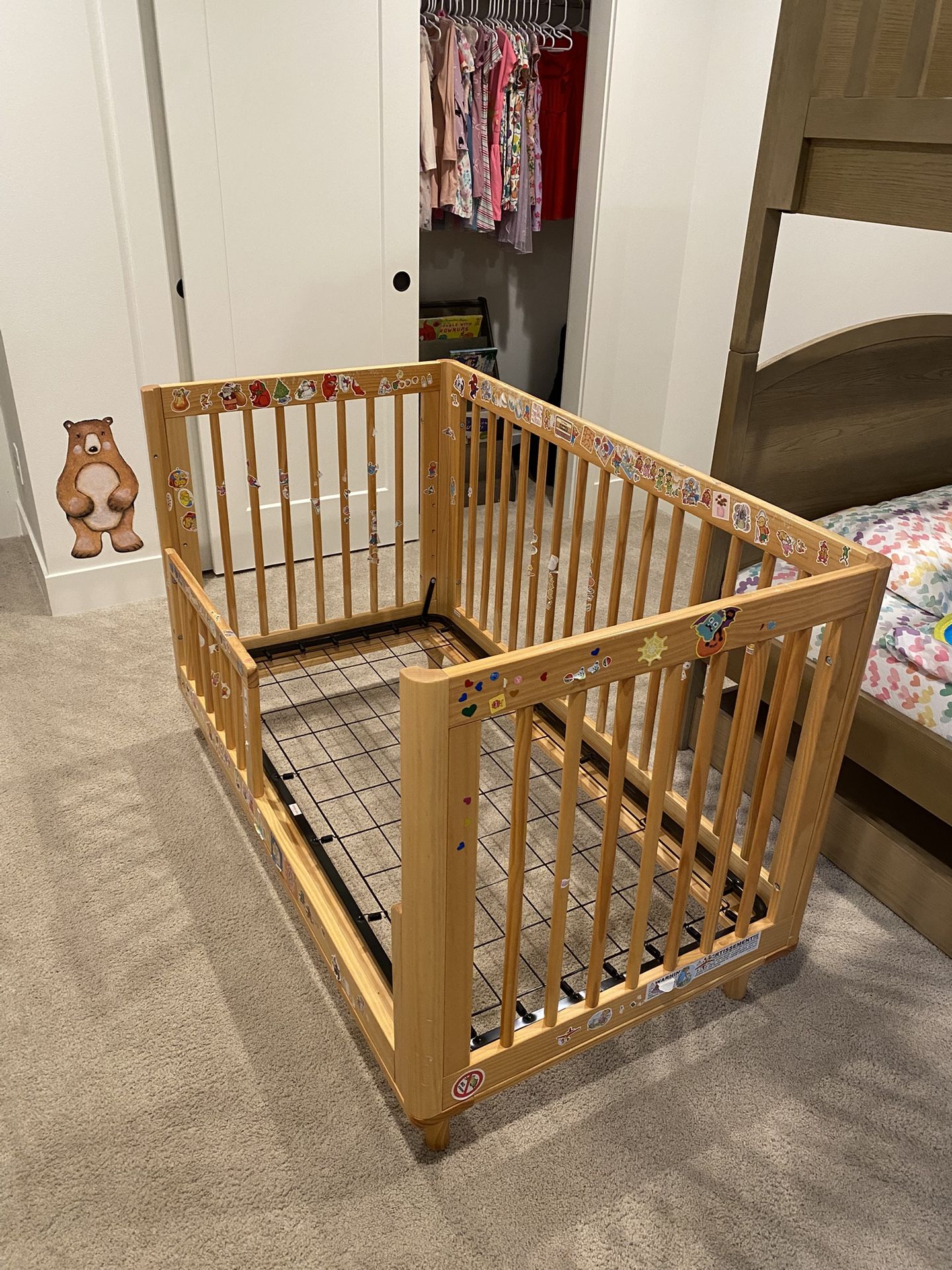 Purchased new in 2021 from Crate & Kids. It’s in excellent shape! Happy to try to remove the stickers!