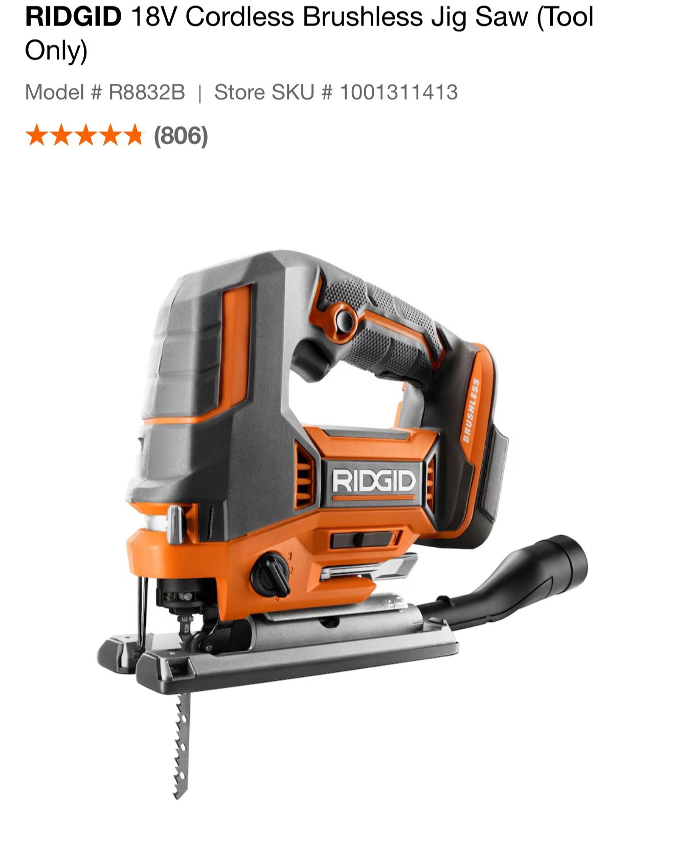 Rigid Octane Brushless 18v Jig Saw R8832B