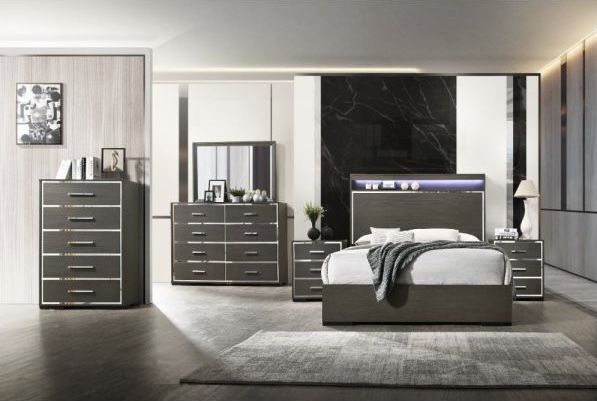 5PC Led Gray Escher Bedroom Set (Q) /w USB Charging Ports