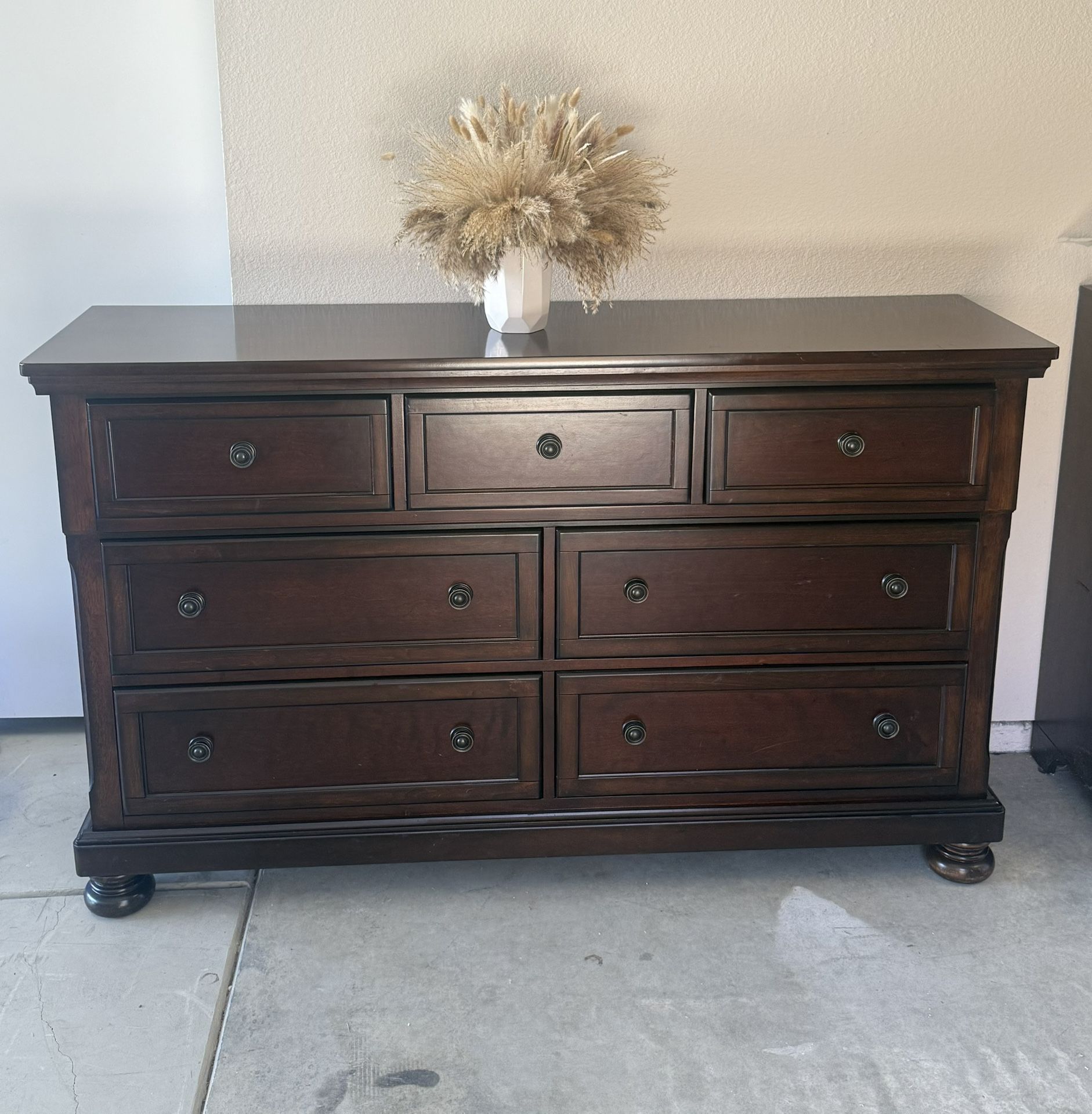 Dresser, with 7 drawers everything works perfectly fine. There is nothing wrong with it. It looks exactly like how it is. All the measurements you are looking for it’s in the picture swipe right you’ll see I also do offer deliveries ask me about the delivery info it’s a very nice solid wood and it’s pretty good quality come take a look at it