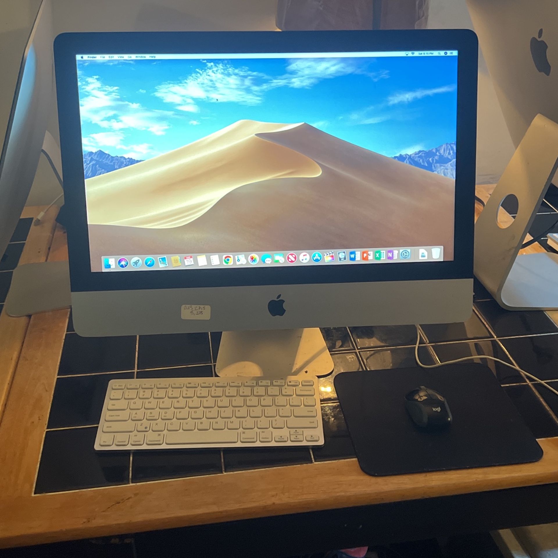 iMac 21.5 inches 8gb Ram silver 2013 slim Mojave operating system 1tb hard drive office 2016 final cut editing software logic Pro X music software wireless keyboard and wireless mouse WebCam works I’m a Apple tech so it’s all good