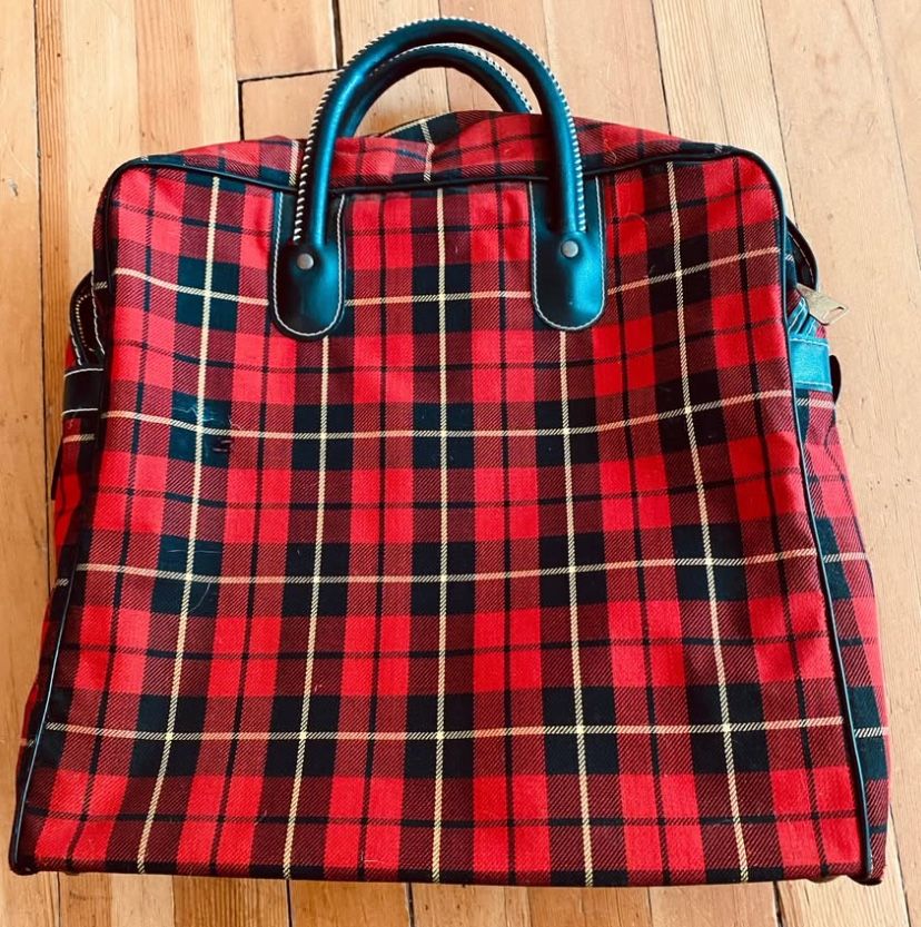 Vintage red plaid lunch picnic tote. I've tried to clean it, but it still has some old spots on it. Firm price. Check out my other listings! I will keep it posted until I sell it so you don't need to ask if it's available. :) Cash/Venmo/Porch Pick Up