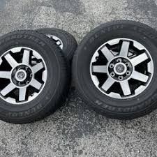Good day Buen dia Rim Rims Wheel Wheels Tires Llantas Sequioa fj Cruiser trd pro style rims Hablamos español I also speak English Se puede llevar uno suelto o el set puede llevarse puro rin o rin con llanta no más me avisa qué es lo que ocupa para decirle en cuanto andan ay en diferentes condiciones You can take a single or a set and rim only or rim and tire just let me know what you need so I can let u know how much they run u I have in different conditions