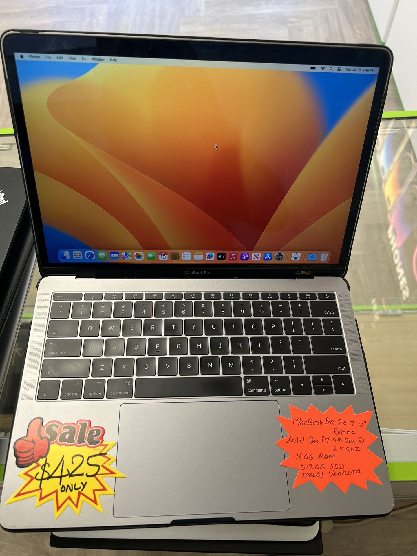 MacBook Pro 13” 2017 Retina Intel Core , 16gb Ram, 512gb Flash SSD, macOS Ventura Comes with $90 worth Microsoft office package installed . C