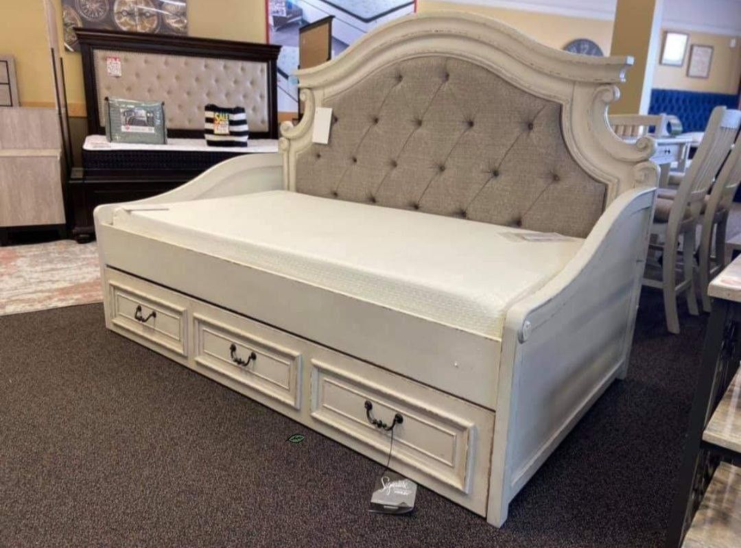 Realyn Chipped White Twin Day BedDaybed with Storage Boxes