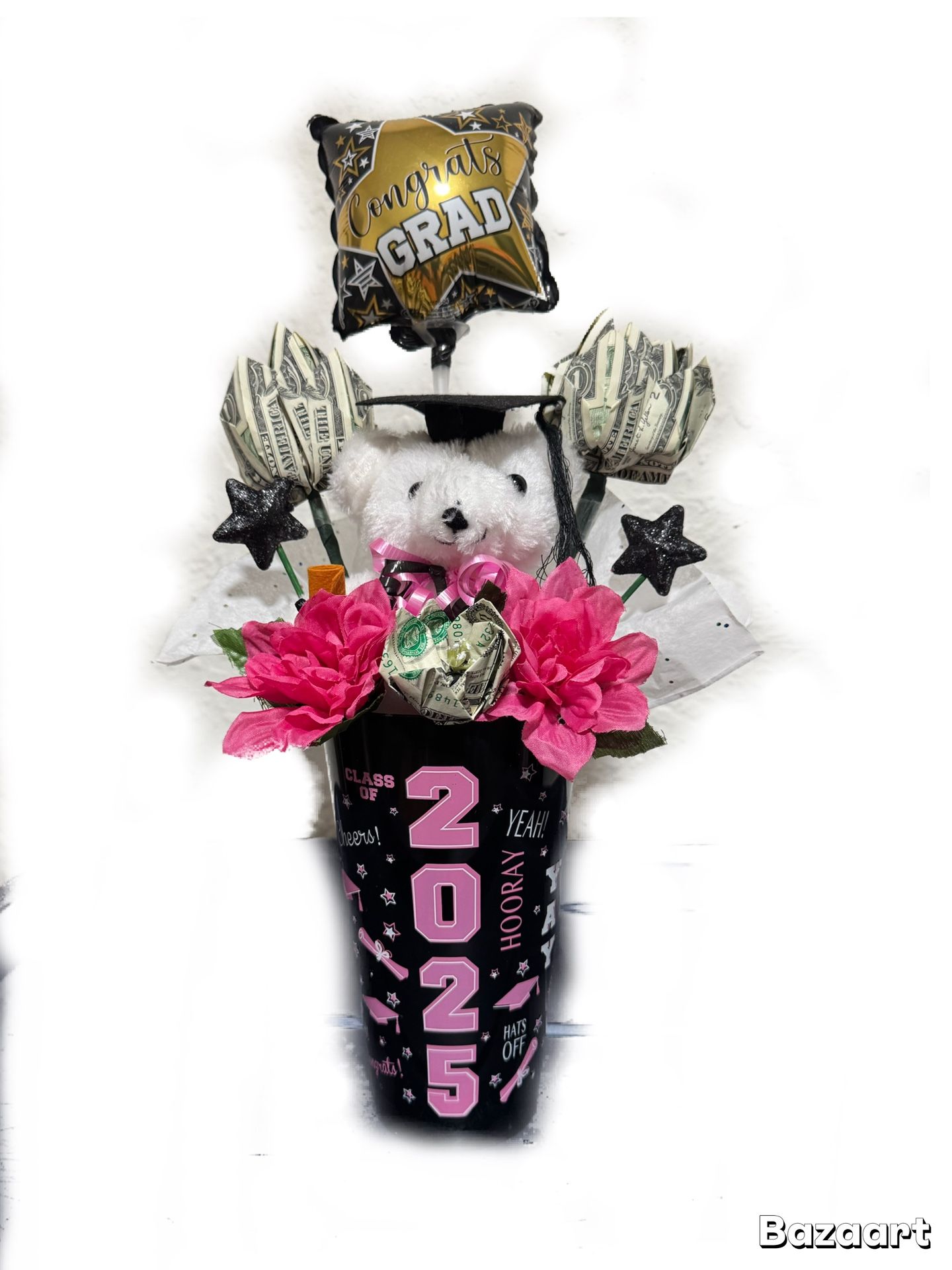 I can make it any color you would like it has 15 One dollar bills it takes 6 dollars to make 1 rose and 3 dollars to make a half a rose