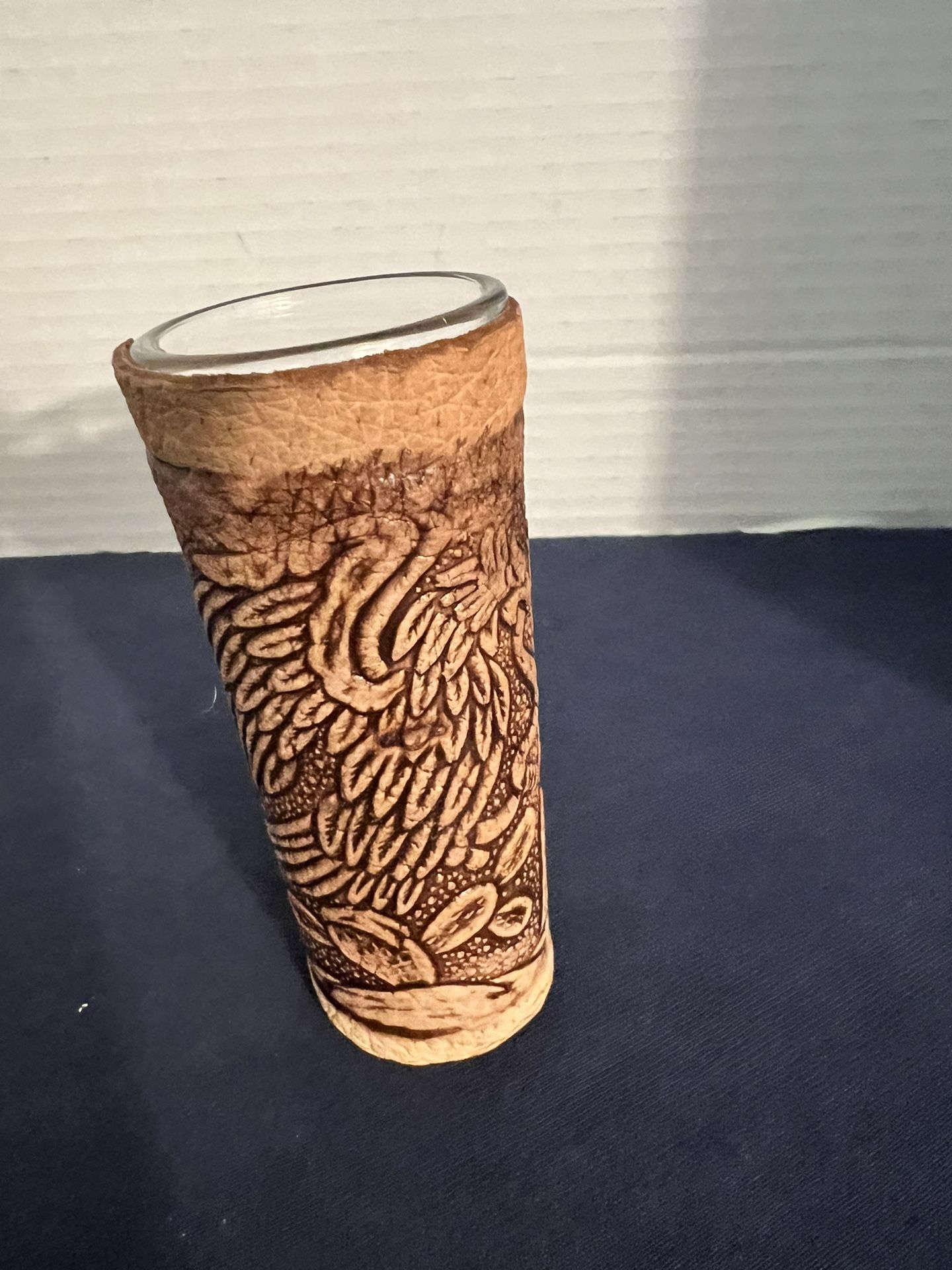 Shot Glasses Engraved Leather With A Eagle From Jalpa Zacatecas Mexico