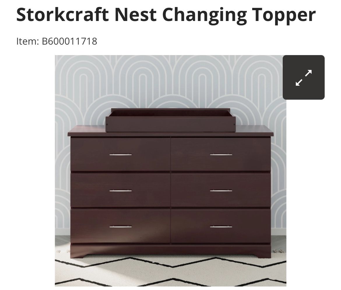 Transform your 6-drawer double dresser into a changing station: Our Storkcraft® Nest Changing Topper is designed to fit on top of your dresser. Soft surface to protect the top of your dresser: The Storkcraft® Nest Changing Topper’s bottom surface is coated in a soft felt fabric to protect the top of your dresser from scratches, and preserve the life of your dresser for use beyond the baby stage. Size: 33.9 x 16.7 x 5.7 (h) Color: espresso NEW IN BOX- never used! Retails $60-$70