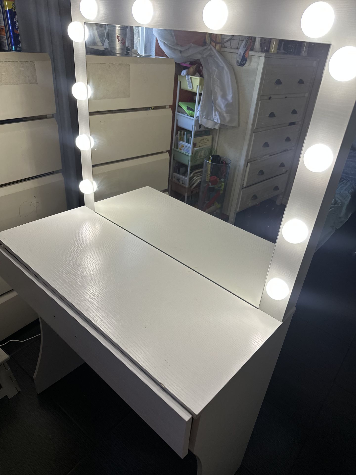 good condition just few makeup satins inside drawers and needs a drawer handle