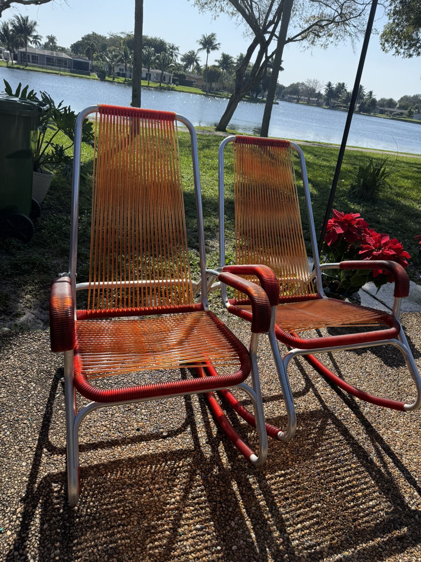 Pair of metal and plastic rocking chairs in good condition. Strong, durable, and easy to clean. Great for patio, porch, or indoor use. $60 for the pair. Local pickup only. Message me if interested!