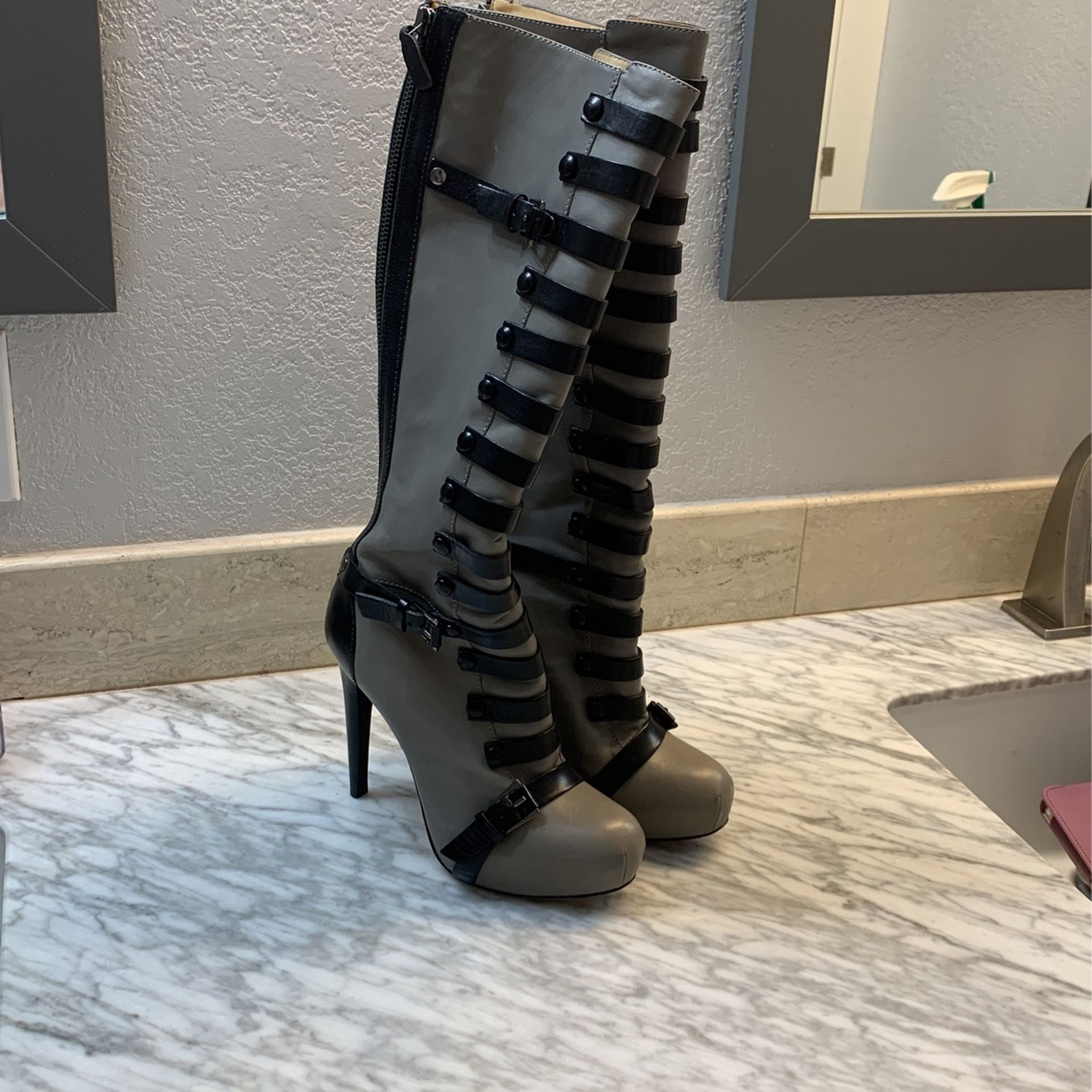 Gray with black straps. Only wore once. Excellent condition. Letter upper and sole. Top quality Lester and craftsman