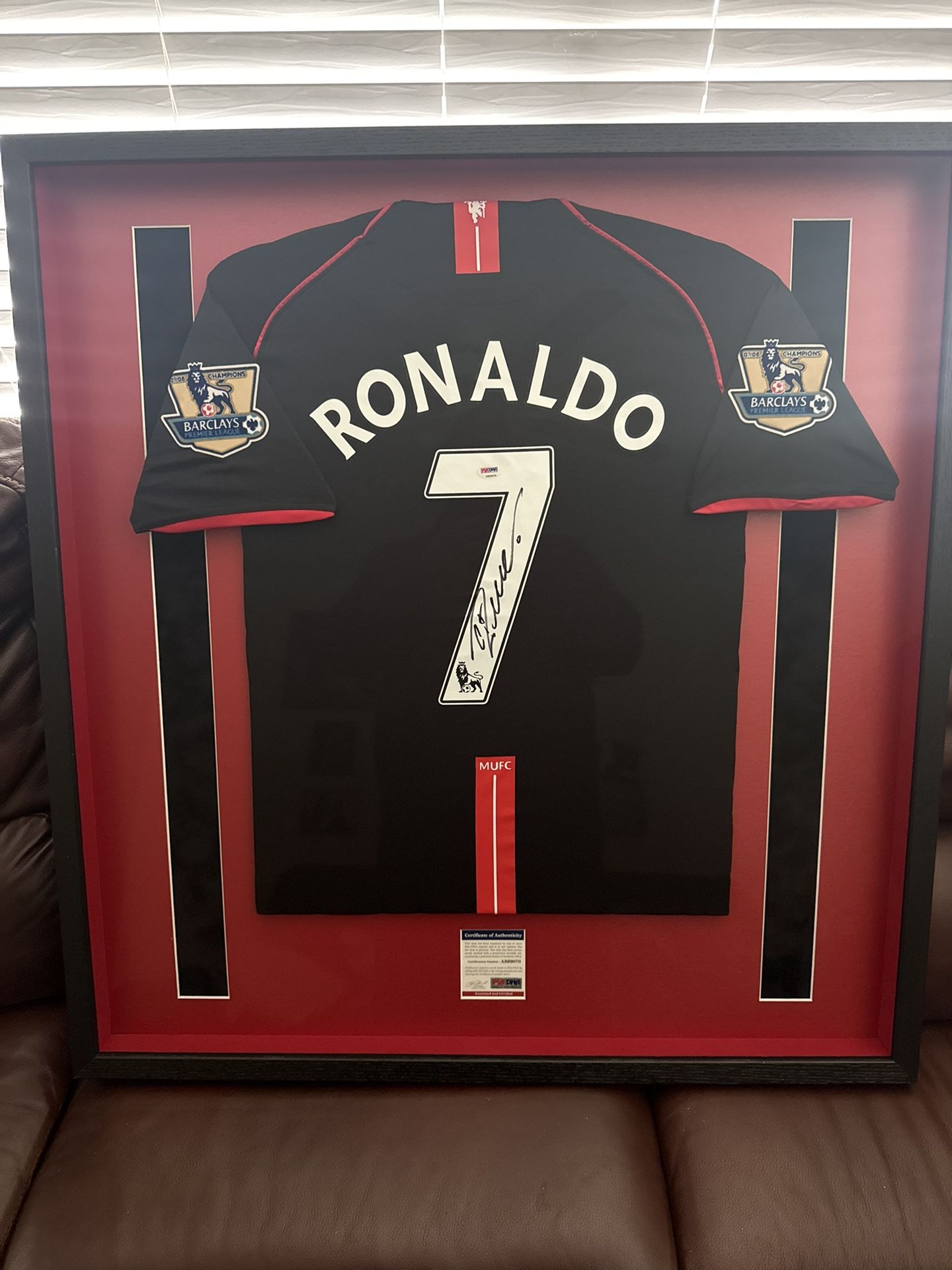 For the serious football collector or true Ronaldo fan 🐐 Available is an authentic, hand-signed Cristiano Ronaldo Manchester United #7 jersey, professionally framed and PSA authenticated. This is a museum-quality display piece and a rare opportunity that doesn’t come around often — once it’s gone, it’s gone. 💰 Price: $3,000 OBO 📨 Open to offers — send them my way 🚫 No trades 📌 Details: • Hand-signed by Cristiano Ronaldo • Iconic Manchester United #7 jersey • PSA Authentication — the best and most trusted in the industry • Professionally framed & display-ready • Excellent condition ⭐ Why This Jersey Matters: While wearing this legendary #7 shirt at Manchester United, Ronaldo scored 118 goals, won 3 Premier League titles, 1 UEFA Champions League, and captured his first Ballon d’Or (2008) — the era that launched him into global superstardom. This isn’t just memorabilia — it’s football royalty. Opportunities like this are rare, so take the chance to make it yours with the highest level of authentication available. 📩 Message me for close-up photos, PSA certification details, or to submit an offer. ⏳ First come, first served.