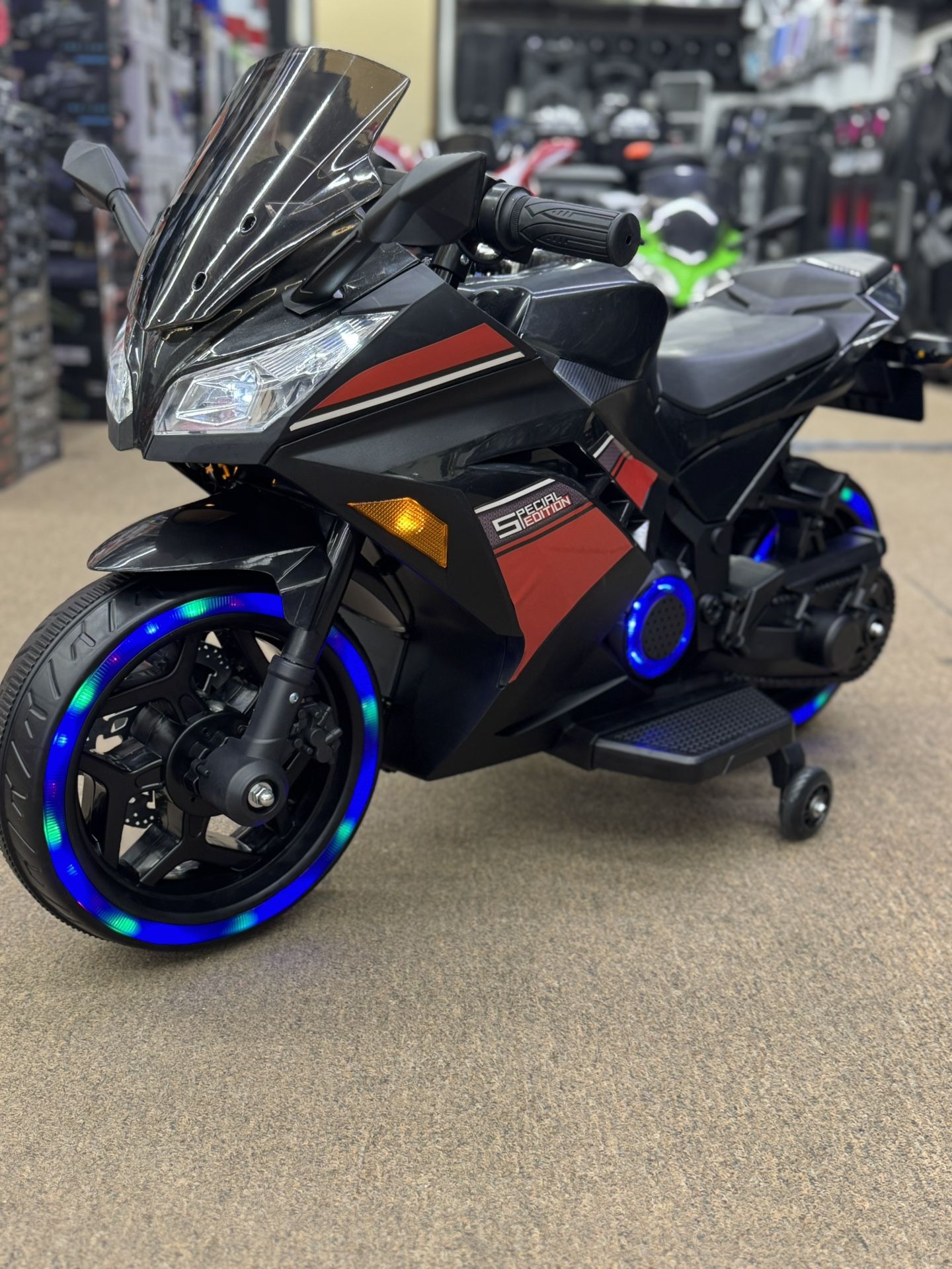 - LED lights on wheel and sides - Built in Music - Key Start - Separate switch for LED lights - Available in 3 colors - No copyrights to the music
