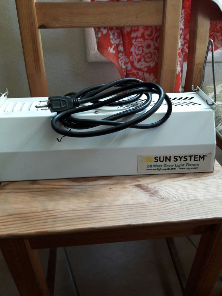 Comes with 150watt bulb. Cord is in perfect condition. Plug and play ready no ballast needed. Two metal clips to hang from. Make me an offer have no use for it