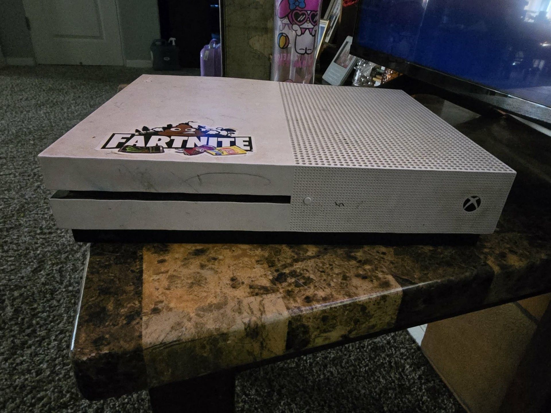 X Box One S 1TB Works fine The only things wrong with it is that in the moment of moving out the back piece broke off a bit and it also has a disc stuck, but over all the X Box work amazing Great condition