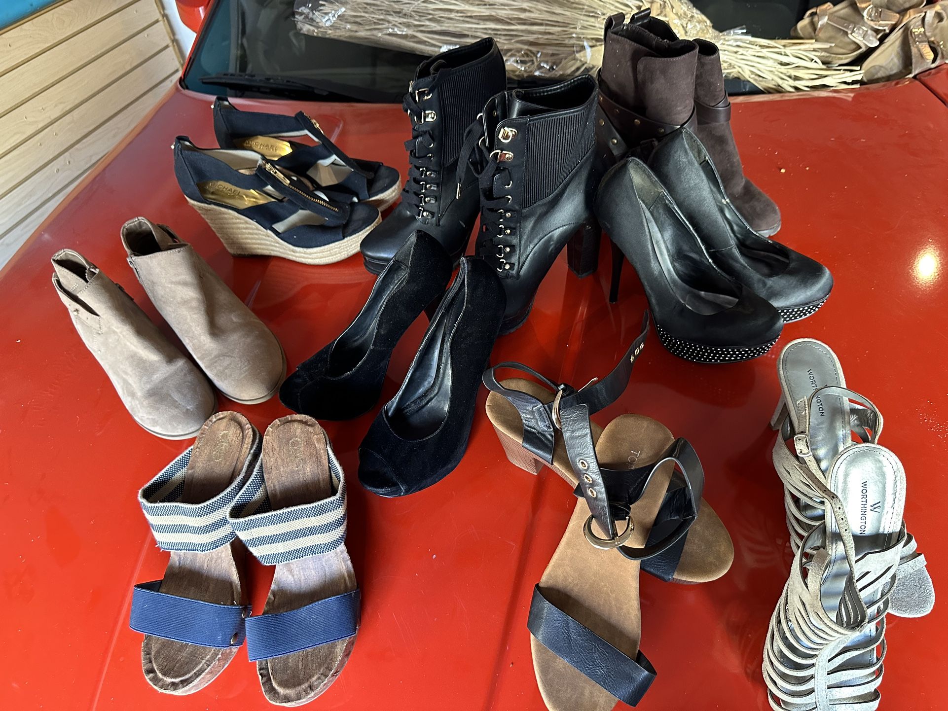 Shoes vary in size, from Size :8 Size:8.5 Open toed shoes can sell them individually or best offer for all. Prefer to sell all shoes if possible. Willing to sell the. Individually or for all, send your best offers! Thanks!