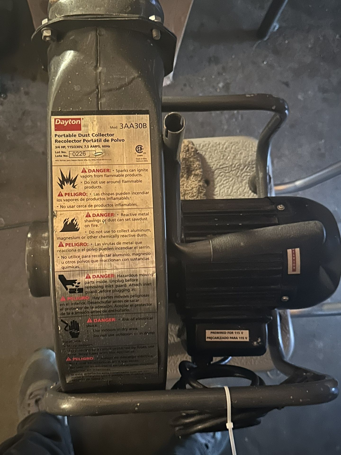 I have a dayton portable dust collector like new for sale