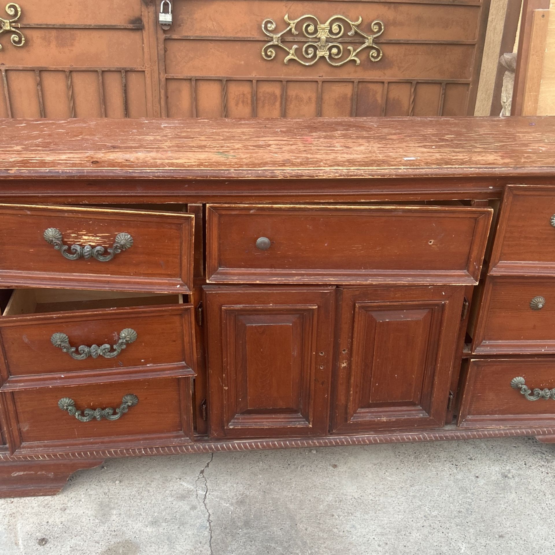 1980s vanity hand made in Mexico made with hardwood brown heavy duty comes with all drawers and mirror!