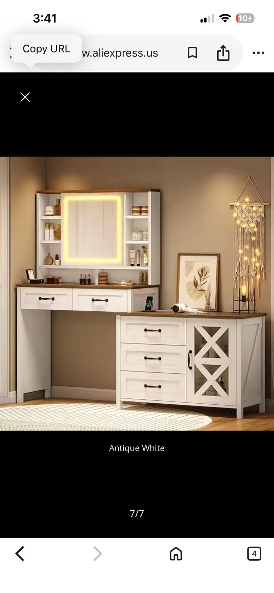 Farmhouse Vanity with Glass Top & Charging Station, Vanity Desk with Touch Screen Mirror and Lights,