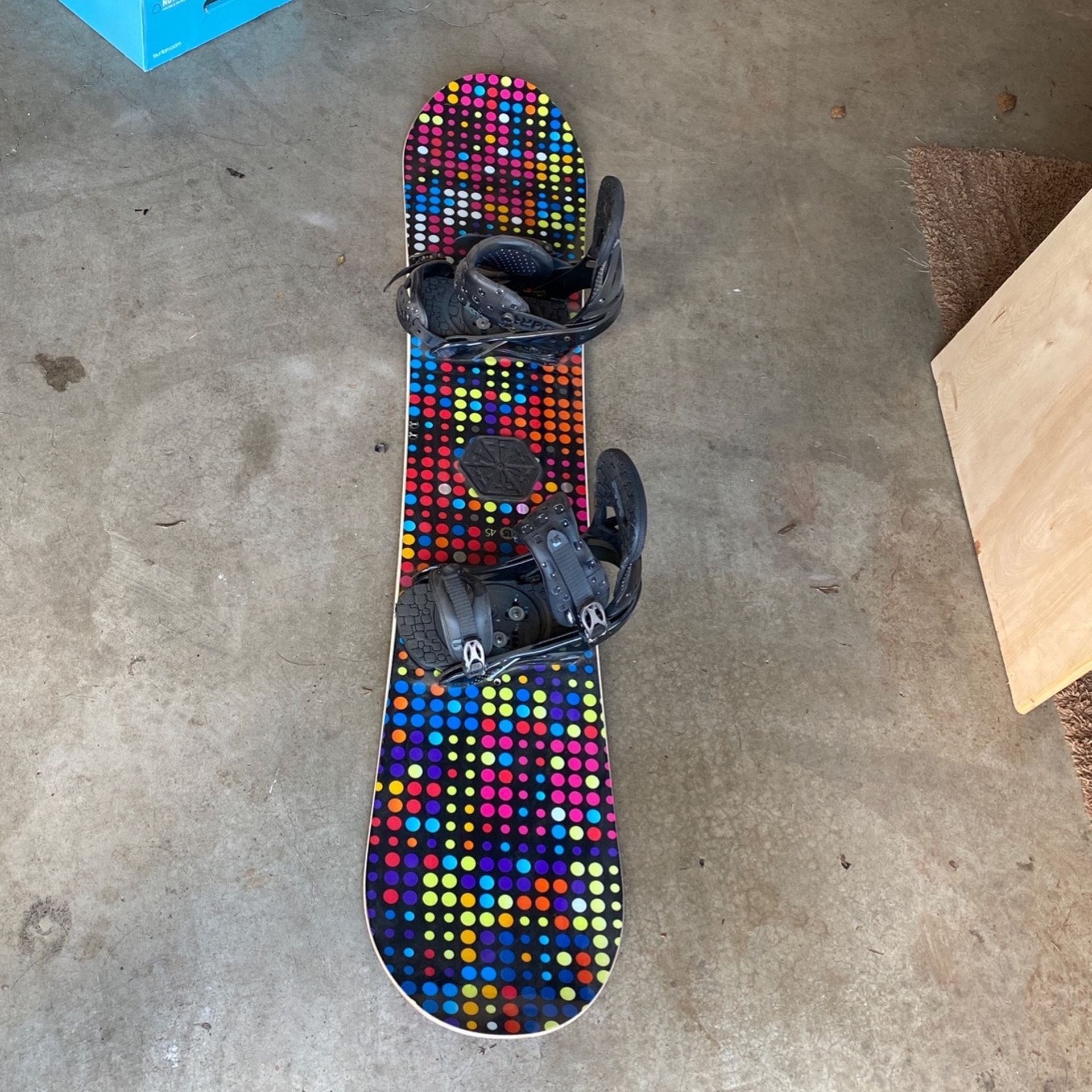 Size 8.5 boots women, polka dots on board and boots. Selling all of this together.