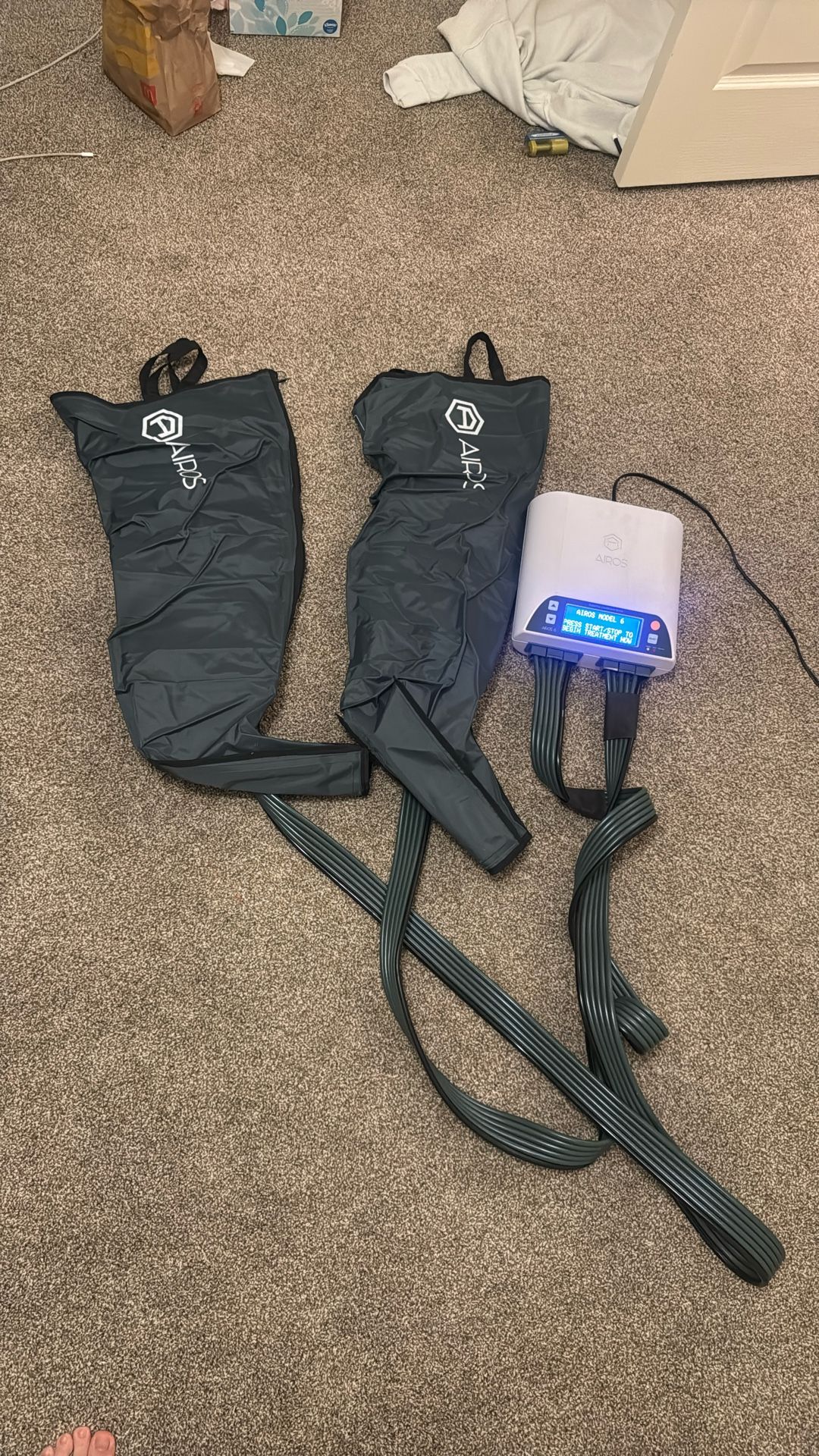 The AIROS 6 leg sleeve, used with the AIROS 6 device, provides gradient sequential compression therapy for conditions like lymphedema and venous disorders, helping to reduce chronic leg swelling, improve circulation, and manage edema by inflating and deflating chambers to gently push fluid out of the limb. brand new goes for 1000 in really good condition!