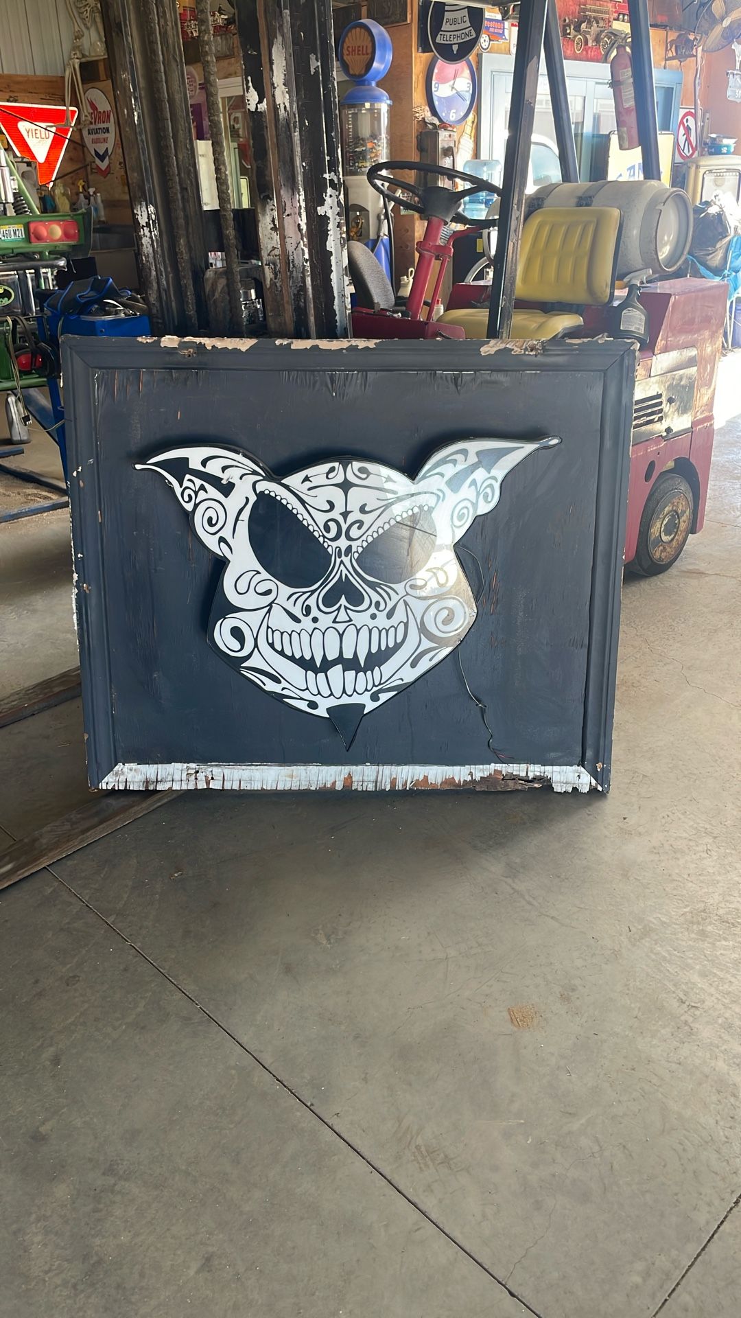 Double sided same thing on both sides.. lights up … both sides… 42 inches high 4ft wide… vintage !!! Wood is damaged but you can put on new pieces or take off