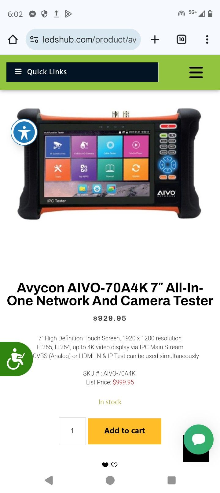 Avycon AIVO-70A4K 7 all In One Network And Camera Tester