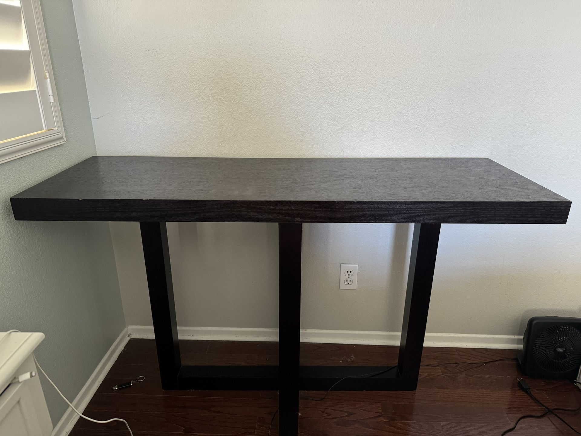 Black wood console table . 54”x18”x31”. Moving sale check page for more