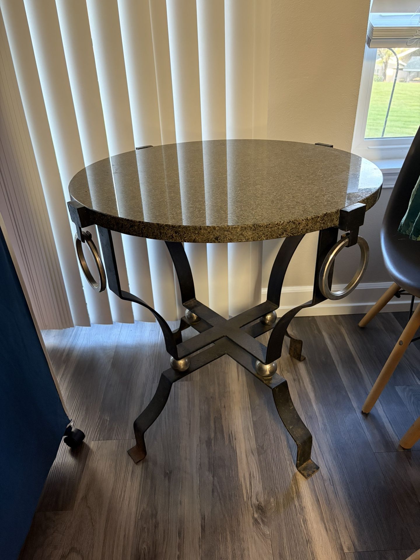 Round accent table with granite top. Barely used so it’s in great condition. It is heavy so it’ll need a couple people to move it. The top is 26.5” in diameter and it stands 28” tall. Pickup in Beaverton!