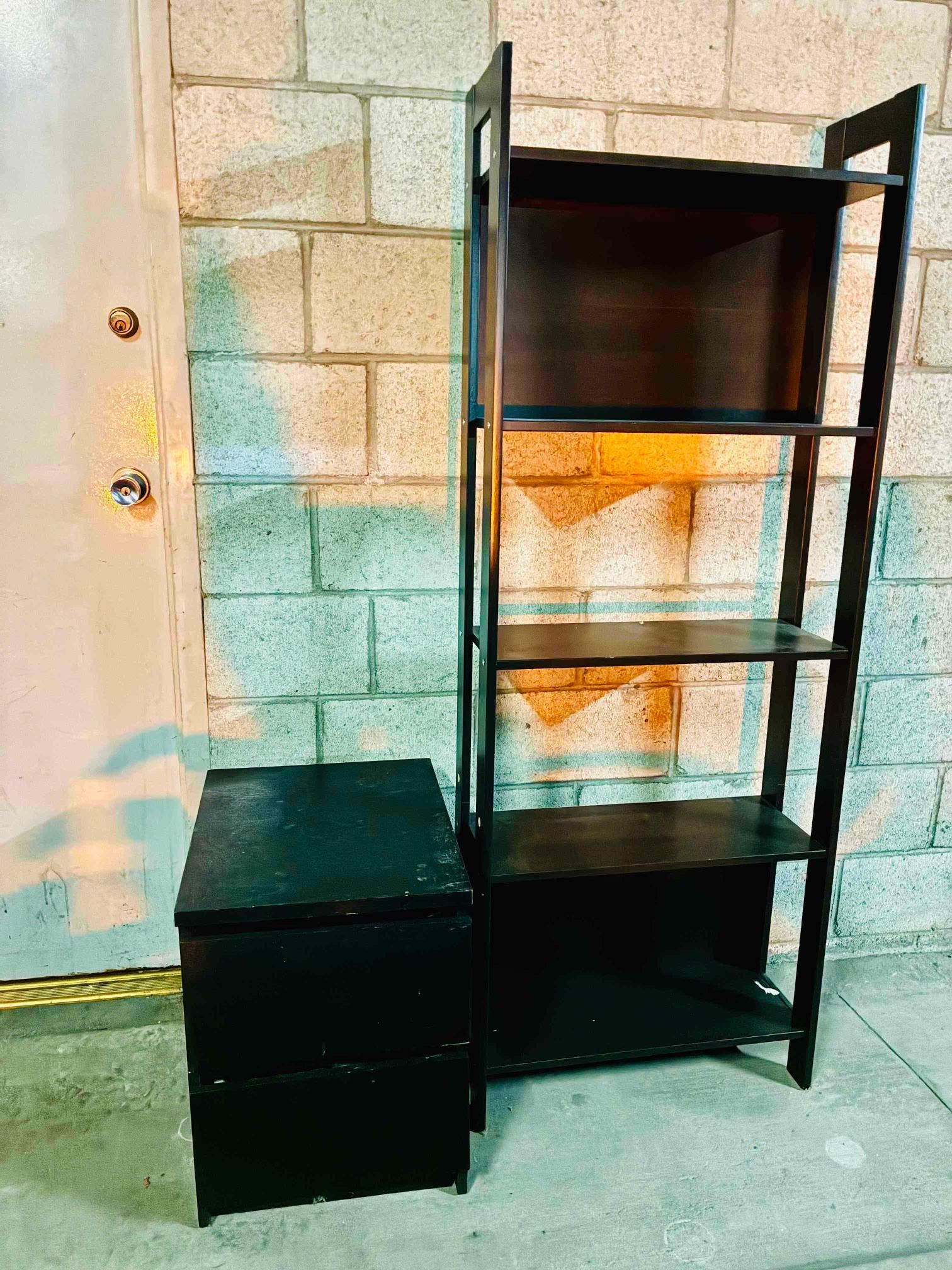 Condition: Used - Good Color/Material: Black finish Upgrade your space with this versatile home or office furniture set - perfect for living rooms, bedrooms, workspaces, studios, or apartments. You can buy both items together at a value price or individually if you only need one piece. Item Details 1) Black Open Shelf Stand • Sleek vertical design optimizes small space storage • 4 spacious shelves for books, décor, storage bins, plants, or office supplies • Modern matte black finish fits with most décor styles Ideal as a bookcase, display shelf, pantry organizer, or workspace storage. 2) Black 2‑Drawer Storage Chest • Compact storage solution for clothes, linens, office supplies, etc. • Clean, functional lines that pair with modern minimalist décor • Note: Bottom drawer alignment is slightly off - fully functional, sold as‑is - price reflects this condition. Bundle Savings This furniture combo is a great deal compared to buying new: • Similar shelving units typically retail $90–$150+ • Small storage chests often run $70–$100+ • Both Items Total: $160-$250 Bundle Price: $124.99 (50% Savings!) Behind‑the‑scenes value for BOTH together! Why It’s a Good Deal ✔ Functional, modern pieces that elevate your space ✔ Spacious storage without bulky footprint ✔ Great for new apartments, offices, or home refreshes ✔ Priced lower than typical resale listings for similar items Pickup Details • Studio City, CA only • Available for pickup this week • Serious buyers only, please message to schedule Keywords: shelf unit, bookcase, storage shelf, organizer, black furniture, 2‑drawer chest, storage chest, modern furniture, home office, apartment furniture, shelving