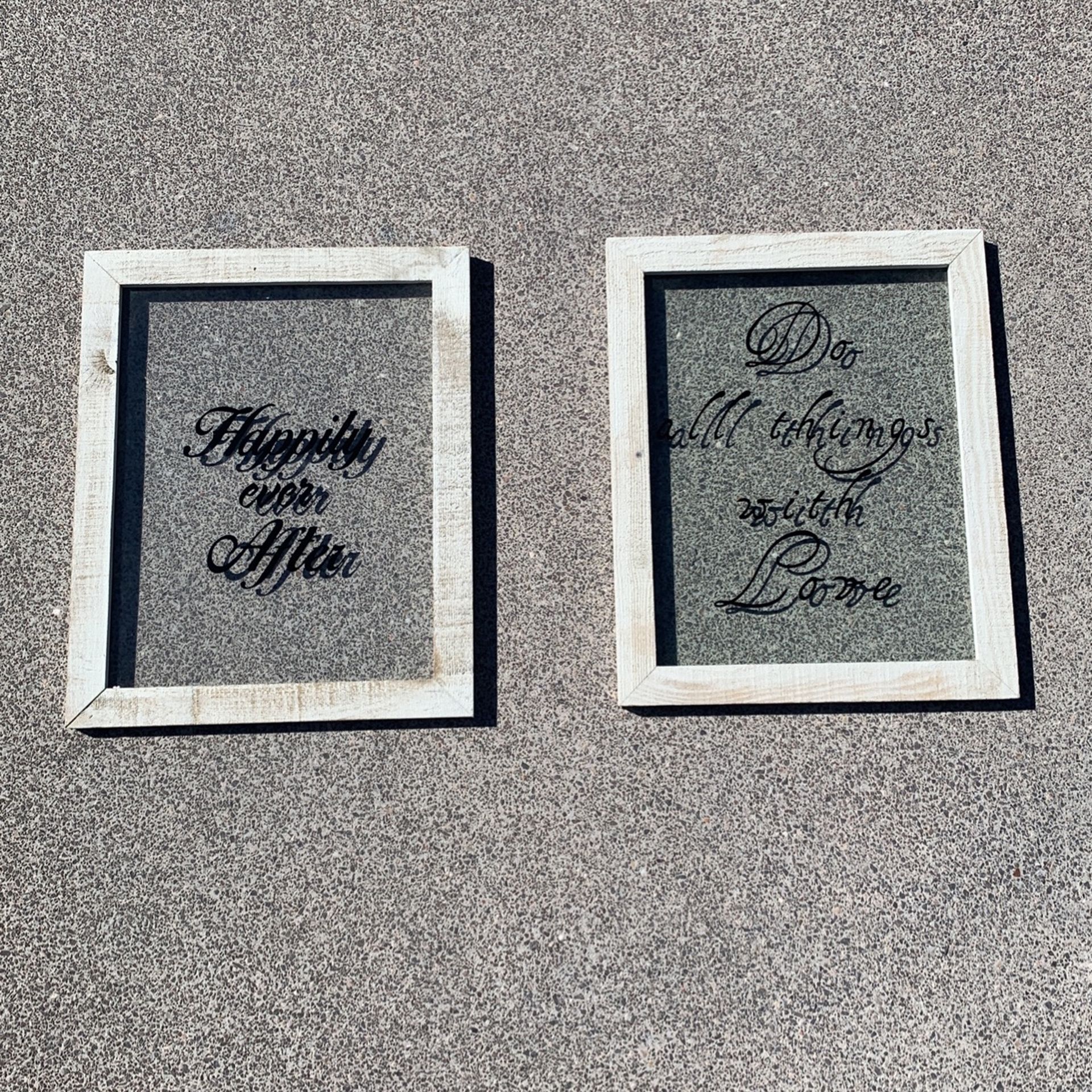 Wall art, wood frame, calligraphy on glass.