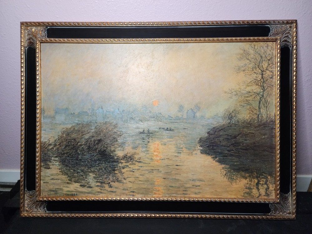 Sunset at Lavacourt, 1880 - Claude Monet (#141/980) Pick up in Baldwin Park 91706 Authentic Reproduction of "Sunset at Lavacourt,1880" by Claude Monet (1(contact info removed)) from The Museum Shop Brushstrokes Collection. Comes in a beautiful black and gold frame and the Certificate of Authentication (#141/980). In great condition. No major flaws. Please see photos for condition. Frame: 42 1/4in W x 30 1/4 in H x 1 1/2 in D 10 lbs 2 oz