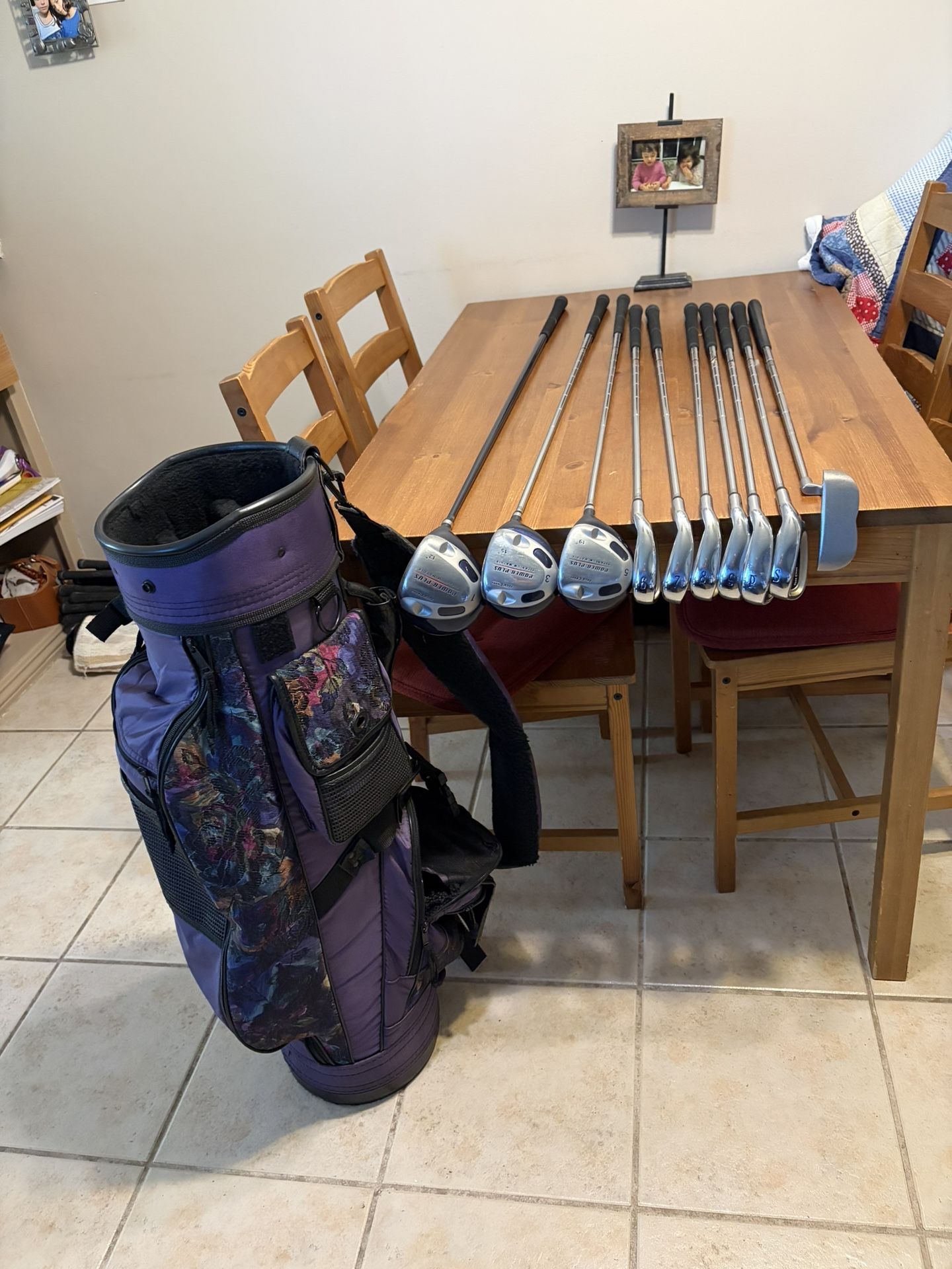USED-GOOD CONDITION NORMAL SCRATCHES WOMEN’S GOLF SET——RIGHT HANDED INCLUDED:CART CARRY GOLF BAG IRONS:6-7-8-9-P-S/DRIVER/3-WOD/5-WOOD PING PUTTER——10 CLUBS TOTAL STEEL SHAFT IRONS/WOODS/PUTTER GRAPHITE SHAFT DRIVER WOMEN’S FLEX. SOME LENGTH MEASURES ARE: DRIVER:43.5”/3-WOOD:42”/5-WOOD:41”/ 6-IRON:36.5”/PUTTER:34” LOCAL PICKUP AND CASH ONLY SHERMAN OAKS LOCATION ZIP 91423 1 MILE FROM STUDIO CITY FROM 101 WOODMAN EXIT