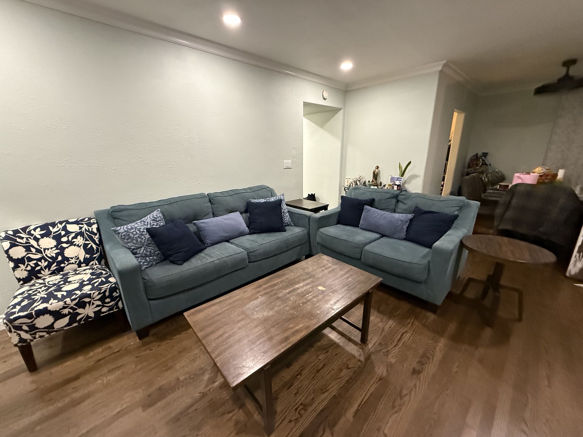 Living room set includes 2 Couches 2 side tables 2 Accent Chairs and Large center table $900.00 OBO Serious buyers only please Great condition Must Go! π