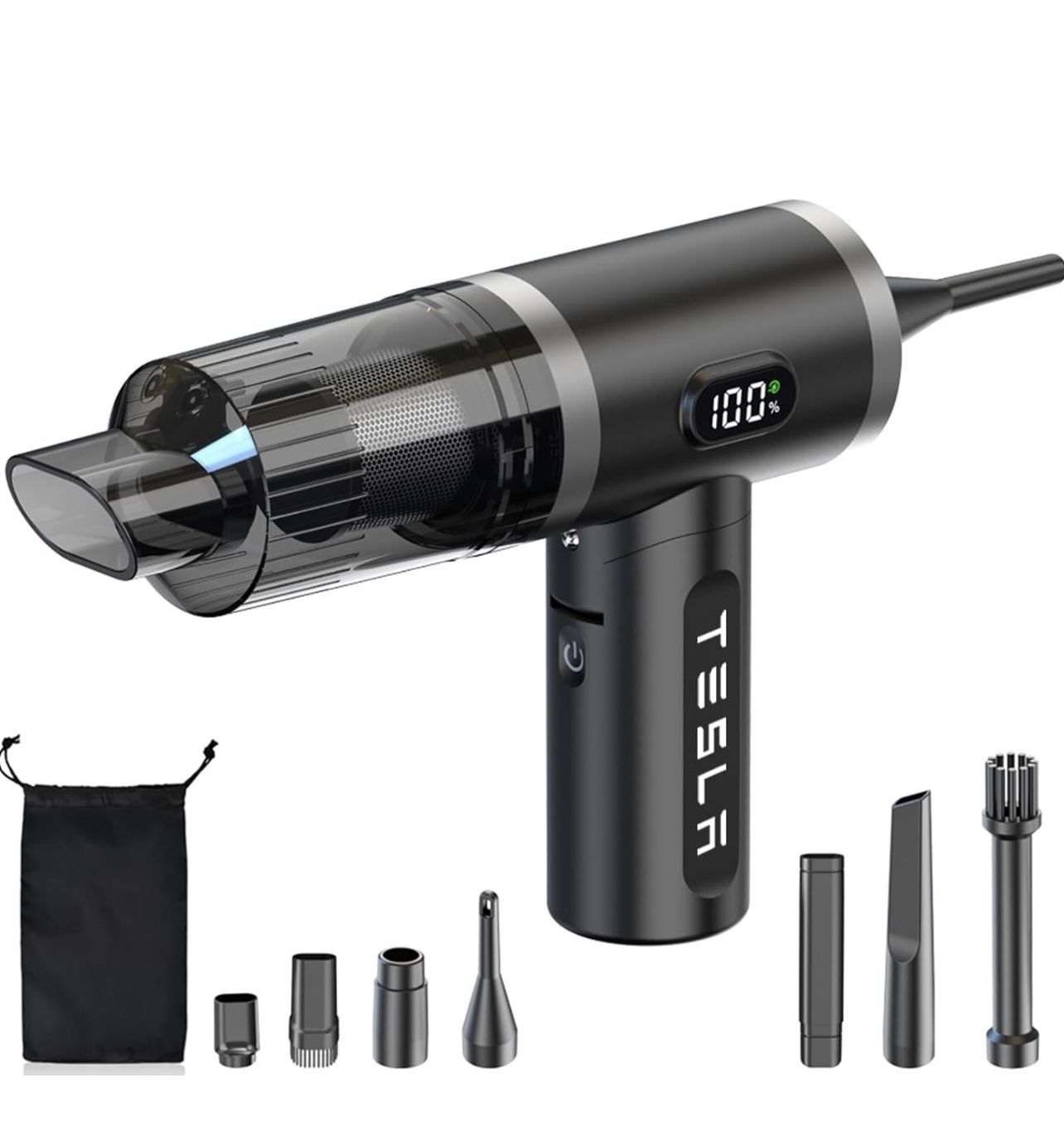 Foldable Car Vacuum Cleaner for Tesla Model 3 Y X S, 4-in-1 Cordless Handheld Vacuum,12000PA High Power, Tesla Mini Portable Car Vacuum with LED, Tesla Model Y 3 X S Accessories 2025