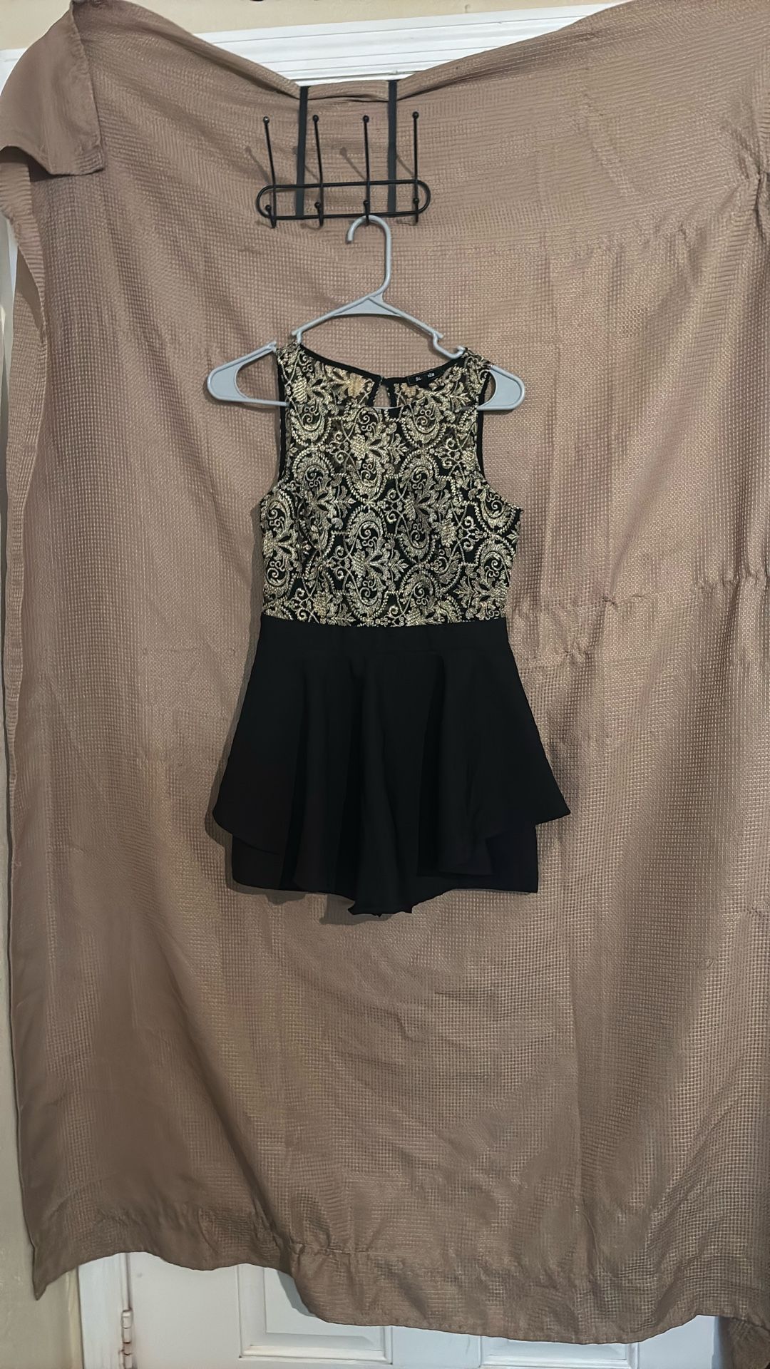 Short cocktail dress with short pants underneath is a medium size color is black and gold
